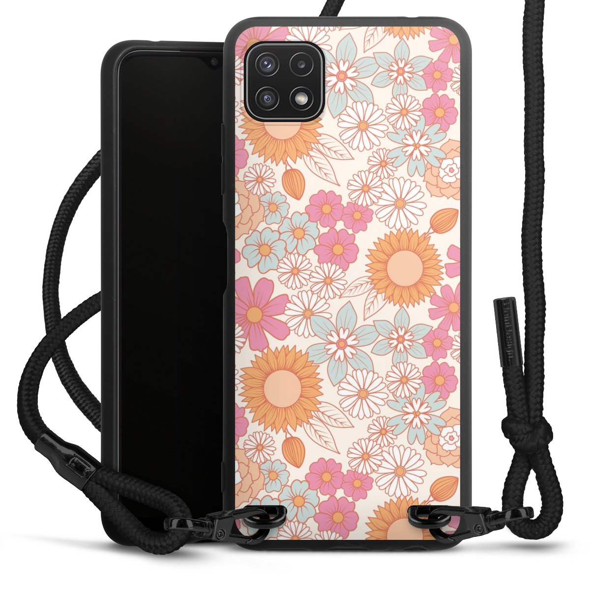 We use the solid direct print process for this phone case, which is why the print area only covers the back and the edge remains unprinted. The case to wear around your neck can be ordered unprinted, fully printed, or partially printed. For your design, either choose one of our exclusive shop motifs or get creative and create your own design, for example with photos and overlays. Design your own personal trend accessory and make an individual statement on the streets!