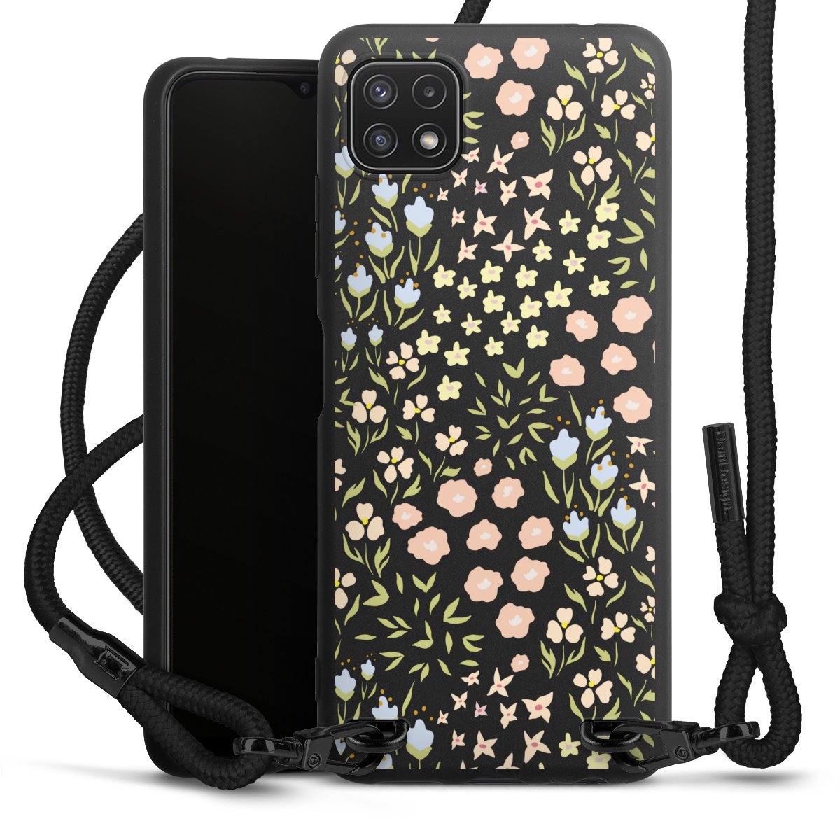 The matt black silicone case is made of flexible TPU (thermoplastic polyurethane) and offers robust protection. The durable, unbreakable material makes the cover flexible and dimensionally stable at the same time. The matte surface makes your design stand out more and is less susceptible to fingerprints and dirt. The stylish trend accessory fits comfortably in the hand and is perfectly complemented by the fabric (polyester) mobile phone strap. The braided fabric strap is approx. 1.70 metres long with a diameter of approx. 0.5 cm. Due to the special knotting technique, the length of the strap can be adjusted by simply pulling it, so that you can adapt it individually to your wishes. The practical case to wear around your neck is available with the fabric strap in black. As a little icing on the cake, we have provided the strap with a chic metal fastener in matt black. The strap is securely fastened to the case with loops made of high-quality genuine leather and press studs. The ends of the fabric strap are covered with metallic end caps and thus protected from fraying.