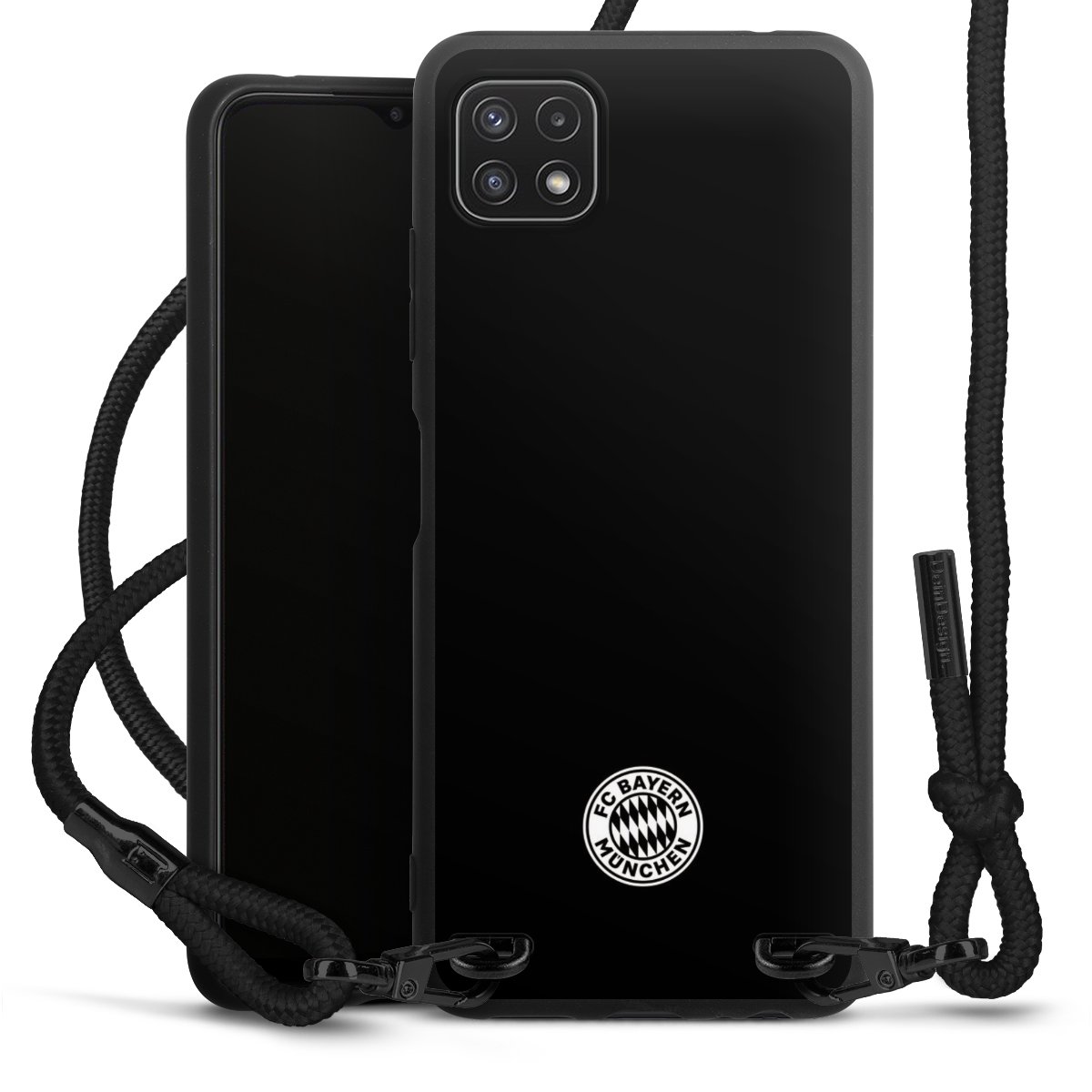 The matt black silicone case is made of flexible TPU (thermoplastic polyurethane) and offers robust protection. The durable, unbreakable material makes the cover flexible and dimensionally stable at the same time. The matte surface makes your design stand out more and is less susceptible to fingerprints and dirt. The stylish trend accessory fits comfortably in the hand and is perfectly complemented by the fabric (polyester) mobile phone strap. The braided fabric strap is approx. 1.70 metres long with a diameter of approx. 0.5 cm. Due to the special knotting technique, the length of the strap can be adjusted by simply pulling it, so that you can adapt it individually to your wishes. The practical case to wear around your neck is available with the fabric strap in black. As a little icing on the cake, we have provided the strap with a chic metal fastener in matt black. The strap is securely fastened to the case with loops made of high-quality genuine leather and press studs. The ends of the fabric strap are covered with metallic end caps and thus protected from fraying.