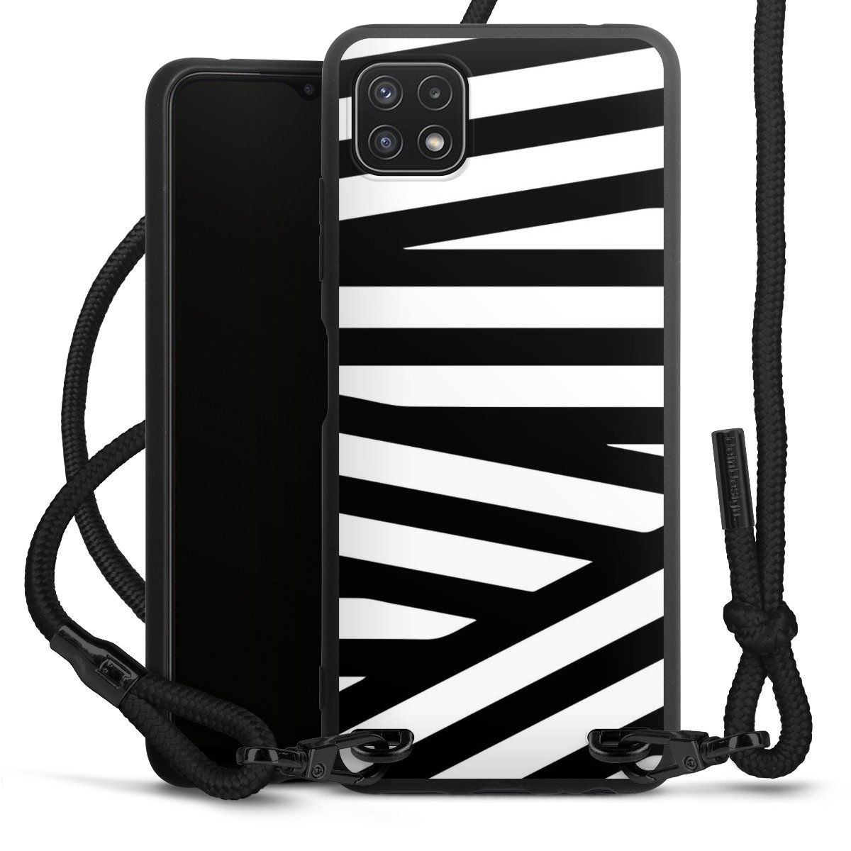 We use the solid direct print process for this phone case, which is why the print area only covers the back and the edge remains unprinted. The case to wear around your neck can be ordered unprinted, fully printed, or partially printed. For your design, either choose one of our exclusive shop motifs or get creative and create your own design, for example with photos and overlays. Design your own personal trend accessory and make an individual statement on the streets!