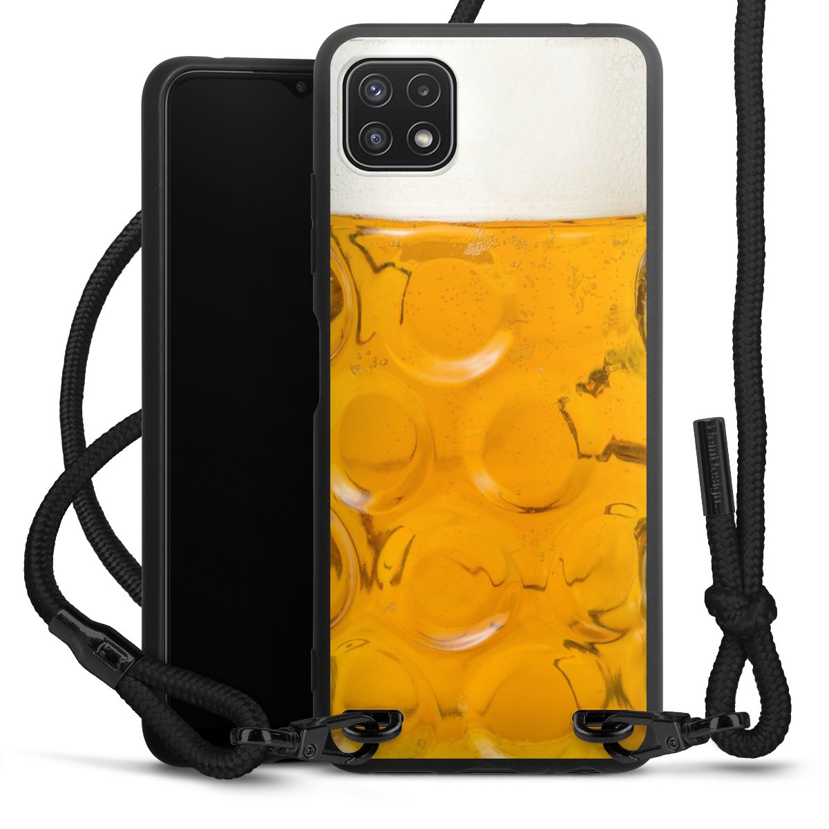 We use the solid direct print process for this phone case, which is why the print area only covers the back and the edge remains unprinted. The case to wear around your neck can be ordered unprinted, fully printed, or partially printed. For your design, either choose one of our exclusive shop motifs or get creative and create your own design, for example with photos and overlays. Design your own personal trend accessory and make an individual statement on the streets!