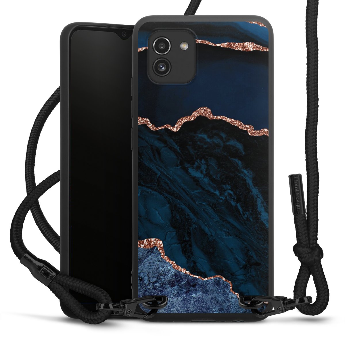 The matt black silicone case is made of flexible TPU (thermoplastic polyurethane) and offers robust protection. The durable, unbreakable material makes the cover flexible and dimensionally stable at the same time. The matte surface makes your design stand out more and is less susceptible to fingerprints and dirt. The stylish trend accessory fits comfortably in the hand and is perfectly complemented by the fabric (polyester) mobile phone strap. The braided fabric strap is approx. 1.70 metres long with a diameter of approx. 0.5 cm. Due to the special knotting technique, the length of the strap can be adjusted by simply pulling it, so that you can adapt it individually to your wishes. The practical case to wear around your neck is available with the fabric strap in black. As a little icing on the cake, we have provided the strap with a chic metal fastener in matt black. The strap is securely fastened to the case with loops made of high-quality genuine leather and press studs. The ends of the fabric strap are covered with metallic end caps and thus protected from fraying.