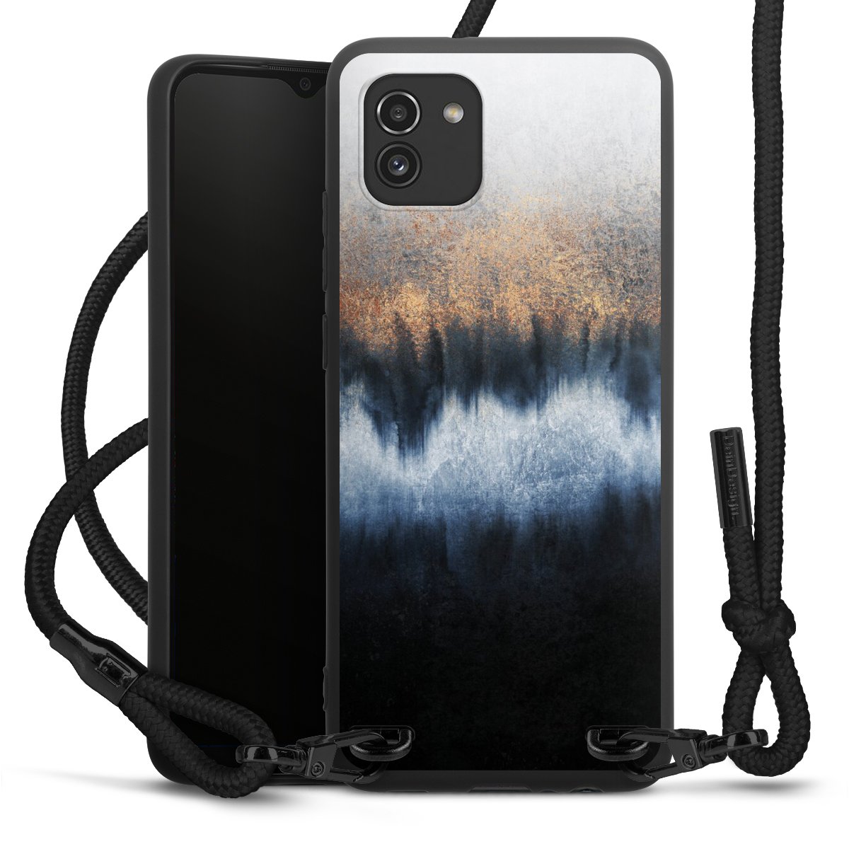 The matt black silicone case is made of flexible TPU (thermoplastic polyurethane) and offers robust protection. The durable, unbreakable material makes the cover flexible and dimensionally stable at the same time. The matte surface makes your design stand out more and is less susceptible to fingerprints and dirt. The stylish trend accessory fits comfortably in the hand and is perfectly complemented by the fabric (polyester) mobile phone strap. The braided fabric strap is approx. 1.70 metres long with a diameter of approx. 0.5 cm. Due to the special knotting technique, the length of the strap can be adjusted by simply pulling it, so that you can adapt it individually to your wishes. The practical case to wear around your neck is available with the fabric strap in black. As a little icing on the cake, we have provided the strap with a chic metal fastener in matt black. The strap is securely fastened to the case with loops made of high-quality genuine leather and press studs. The ends of the fabric strap are covered with metallic end caps and thus protected from fraying.