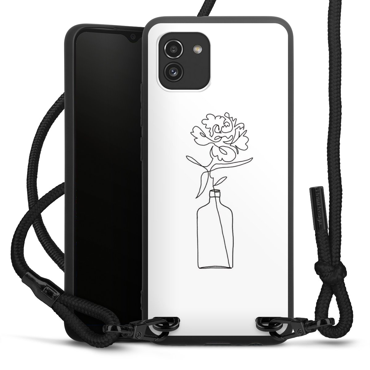 The matt black silicone case is made of flexible TPU (thermoplastic polyurethane) and offers robust protection. The durable, unbreakable material makes the cover flexible and dimensionally stable at the same time. The matte surface makes your design stand out more and is less susceptible to fingerprints and dirt. The stylish trend accessory fits comfortably in the hand and is perfectly complemented by the fabric (polyester) mobile phone strap. The braided fabric strap is approx. 1.70 metres long with a diameter of approx. 0.5 cm. Due to the special knotting technique, the length of the strap can be adjusted by simply pulling it, so that you can adapt it individually to your wishes. The practical case to wear around your neck is available with the fabric strap in black. As a little icing on the cake, we have provided the strap with a chic metal fastener in matt black. The strap is securely fastened to the case with loops made of high-quality genuine leather and press studs. The ends of the fabric strap are covered with metallic end caps and thus protected from fraying.