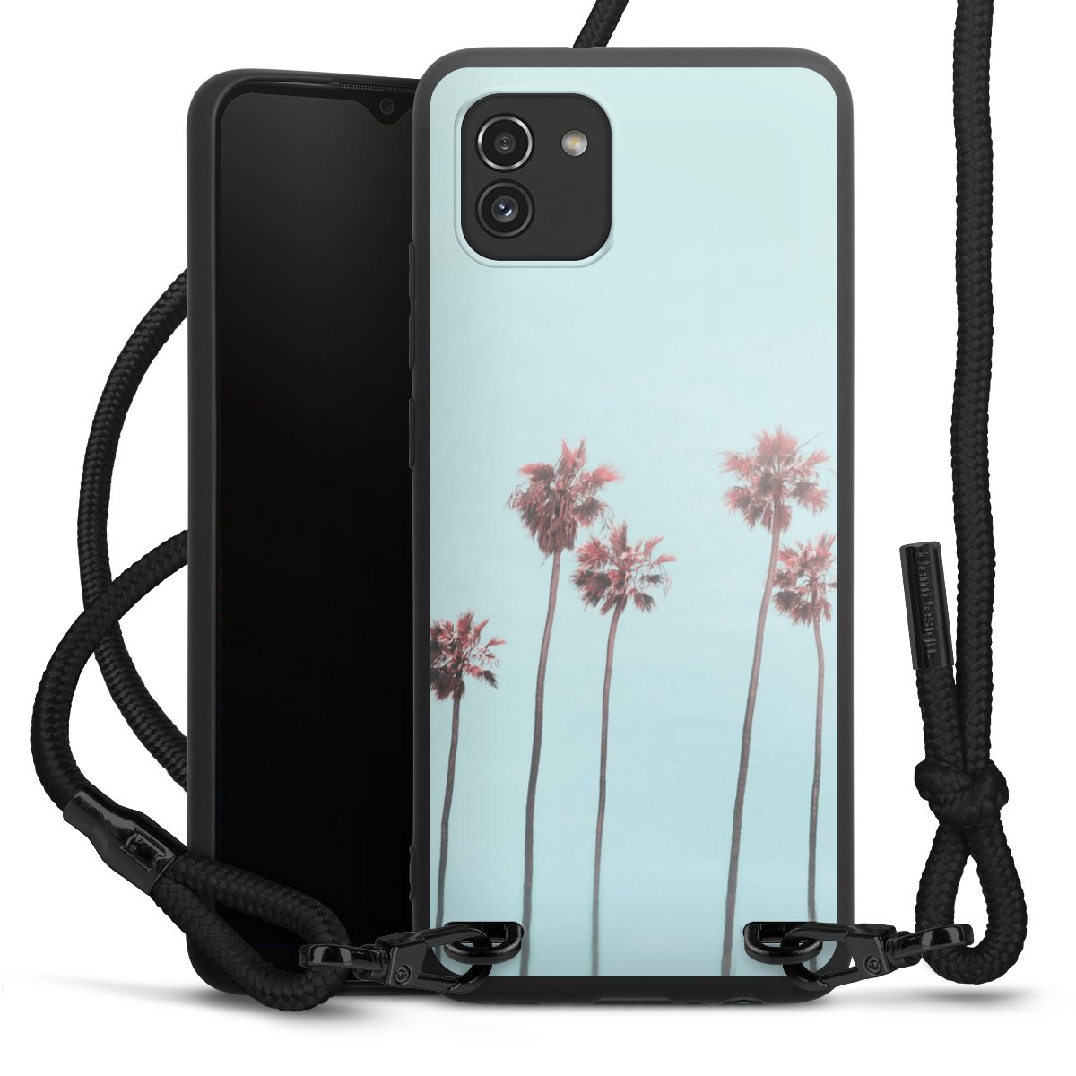 We use the solid direct print process for this phone case, which is why the print area only covers the back and the edge remains unprinted. The case to wear around your neck can be ordered unprinted, fully printed, or partially printed. For your design, either choose one of our exclusive shop motifs or get creative and create your own design, for example with photos and overlays. Design your own personal trend accessory and make an individual statement on the streets!