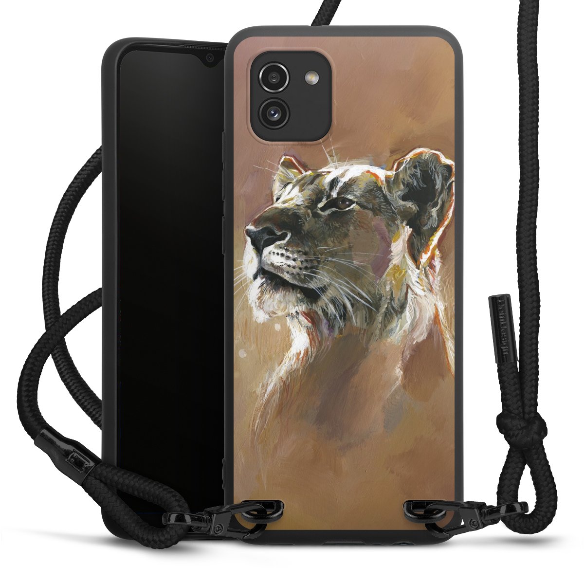 We use the solid direct print process for this phone case, which is why the print area only covers the back and the edge remains unprinted. The case to wear around your neck can be ordered unprinted, fully printed, or partially printed. For your design, either choose one of our exclusive shop motifs or get creative and create your own design, for example with photos and overlays. Design your own personal trend accessory and make an individual statement on the streets!
