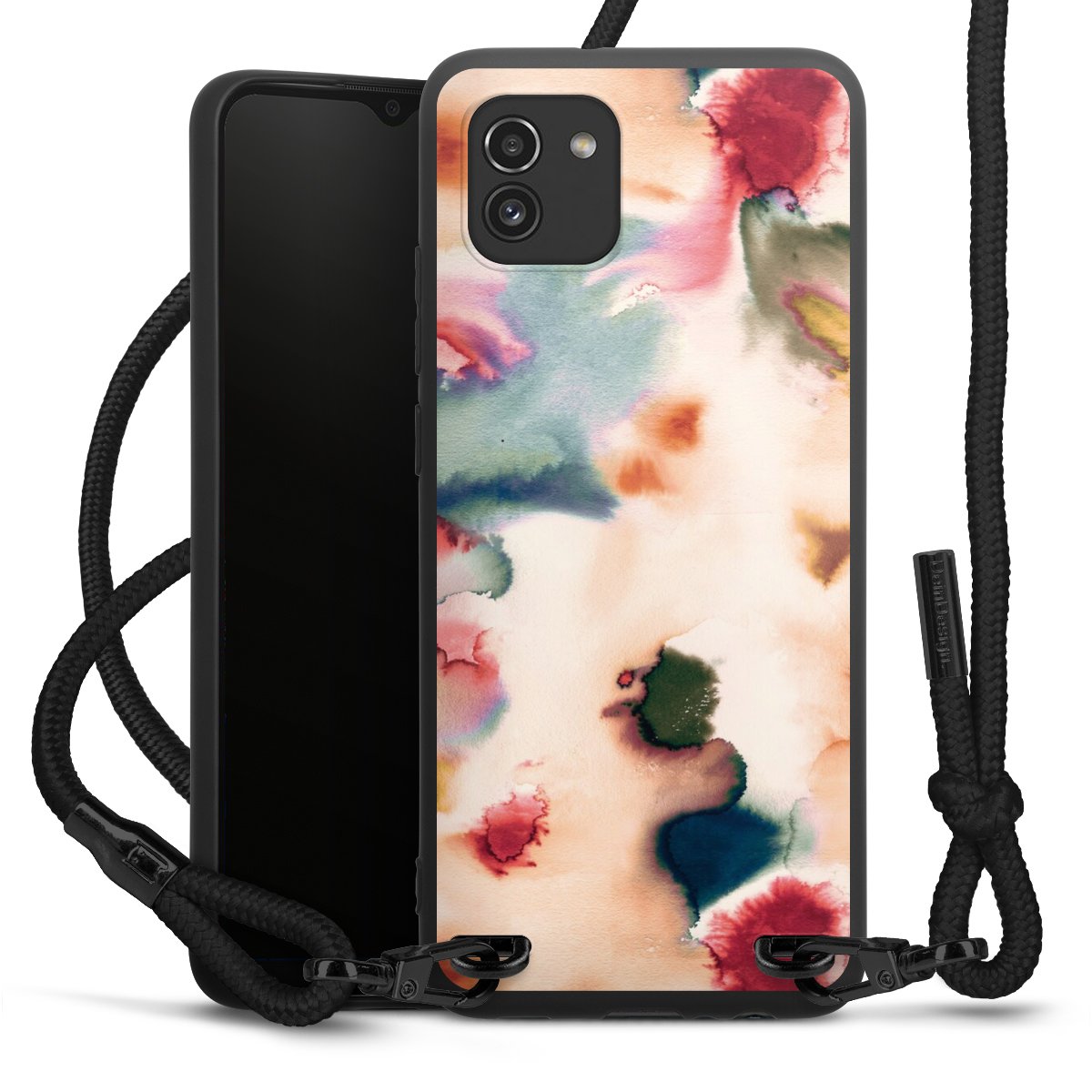 We use the solid direct print process for this phone case, which is why the print area only covers the back and the edge remains unprinted. The case to wear around your neck can be ordered unprinted, fully printed, or partially printed. For your design, either choose one of our exclusive shop motifs or get creative and create your own design, for example with photos and overlays. Design your own personal trend accessory and make an individual statement on the streets!