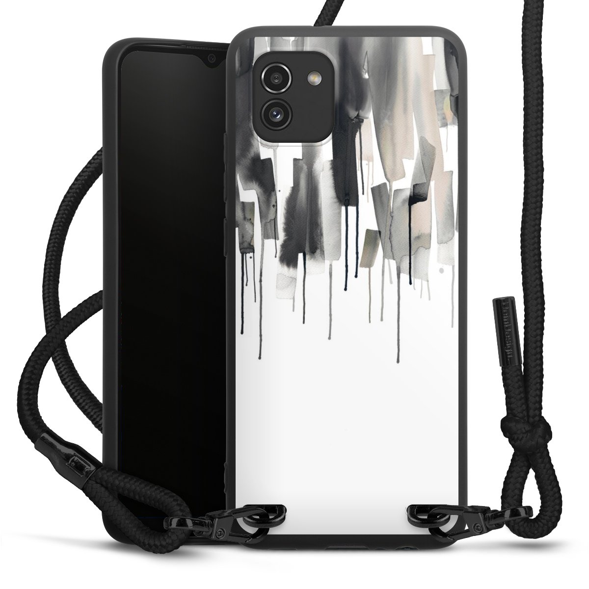 The matt black silicone case is made of flexible TPU (thermoplastic polyurethane) and offers robust protection. The durable, unbreakable material makes the cover flexible and dimensionally stable at the same time. The matte surface makes your design stand out more and is less susceptible to fingerprints and dirt. The stylish trend accessory fits comfortably in the hand and is perfectly complemented by the fabric (polyester) mobile phone strap. The braided fabric strap is approx. 1.70 metres long with a diameter of approx. 0.5 cm. Due to the special knotting technique, the length of the strap can be adjusted by simply pulling it, so that you can adapt it individually to your wishes. The practical case to wear around your neck is available with the fabric strap in black. As a little icing on the cake, we have provided the strap with a chic metal fastener in matt black. The strap is securely fastened to the case with loops made of high-quality genuine leather and press studs. The ends of the fabric strap are covered with metallic end caps and thus protected from fraying.
