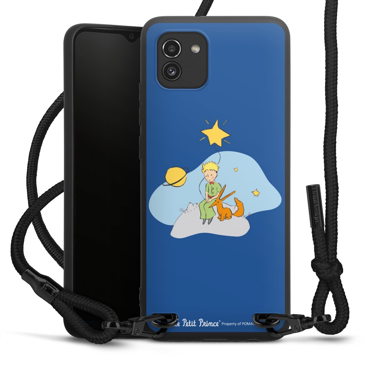 The matt black silicone case is made of flexible TPU (thermoplastic polyurethane) and offers robust protection. The durable, unbreakable material makes the cover flexible and dimensionally stable at the same time. The matte surface makes your design stand out more and is less susceptible to fingerprints and dirt. The stylish trend accessory fits comfortably in the hand and is perfectly complemented by the fabric (polyester) mobile phone strap. The braided fabric strap is approx. 1.70 metres long with a diameter of approx. 0.5 cm. Due to the special knotting technique, the length of the strap can be adjusted by simply pulling it, so that you can adapt it individually to your wishes. The practical case to wear around your neck is available with the fabric strap in black. As a little icing on the cake, we have provided the strap with a chic metal fastener in matt black. The strap is securely fastened to the case with loops made of high-quality genuine leather and press studs. The ends of the fabric strap are covered with metallic end caps and thus protected from fraying.