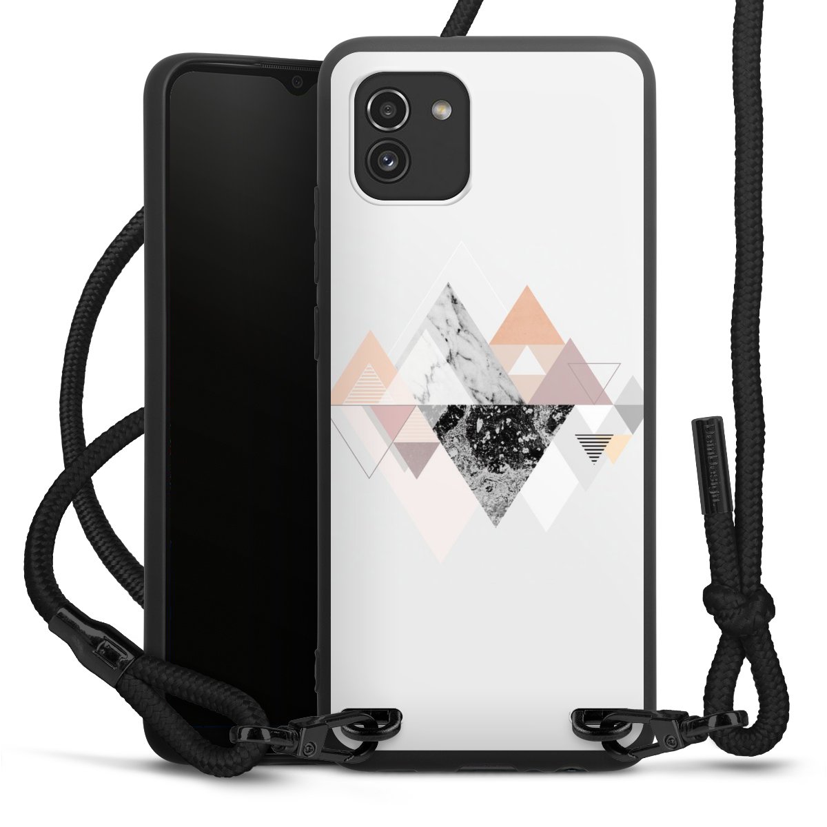 We use the solid direct print process for this phone case, which is why the print area only covers the back and the edge remains unprinted. The case to wear around your neck can be ordered unprinted, fully printed, or partially printed. For your design, either choose one of our exclusive shop motifs or get creative and create your own design, for example with photos and overlays. Design your own personal trend accessory and make an individual statement on the streets!