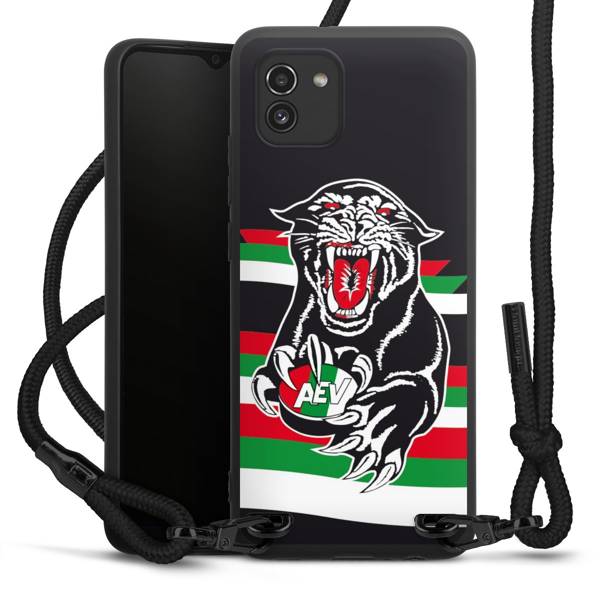 The matt black silicone case is made of flexible TPU (thermoplastic polyurethane) and offers robust protection. The durable, unbreakable material makes the cover flexible and dimensionally stable at the same time. The matte surface makes your design stand out more and is less susceptible to fingerprints and dirt. The stylish trend accessory fits comfortably in the hand and is perfectly complemented by the fabric (polyester) mobile phone strap. The braided fabric strap is approx. 1.70 metres long with a diameter of approx. 0.5 cm. Due to the special knotting technique, the length of the strap can be adjusted by simply pulling it, so that you can adapt it individually to your wishes. The practical case to wear around your neck is available with the fabric strap in black. As a little icing on the cake, we have provided the strap with a chic metal fastener in matt black. The strap is securely fastened to the case with loops made of high-quality genuine leather and press studs. The ends of the fabric strap are covered with metallic end caps and thus protected from fraying.