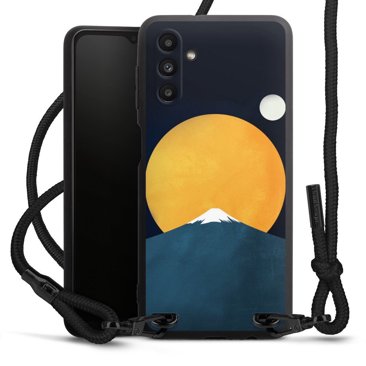 The matt black silicone case is made of flexible TPU (thermoplastic polyurethane) and offers robust protection. The durable, unbreakable material makes the cover flexible and dimensionally stable at the same time. The matte surface makes your design stand out more and is less susceptible to fingerprints and dirt. The stylish trend accessory fits comfortably in the hand and is perfectly complemented by the fabric (polyester) mobile phone strap. The braided fabric strap is approx. 1.70 metres long with a diameter of approx. 0.5 cm. Due to the special knotting technique, the length of the strap can be adjusted by simply pulling it, so that you can adapt it individually to your wishes. The practical case to wear around your neck is available with the fabric strap in black. As a little icing on the cake, we have provided the strap with a chic metal fastener in matt black. The strap is securely fastened to the case with loops made of high-quality genuine leather and press studs. The ends of the fabric strap are covered with metallic end caps and thus protected from fraying.