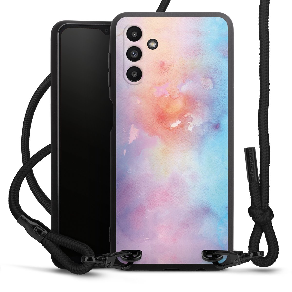We use the solid direct print process for this phone case, which is why the print area only covers the back and the edge remains unprinted. The case to wear around your neck can be ordered unprinted, fully printed, or partially printed. For your design, either choose one of our exclusive shop motifs or get creative and create your own design, for example with photos and overlays. Design your own personal trend accessory and make an individual statement on the streets!