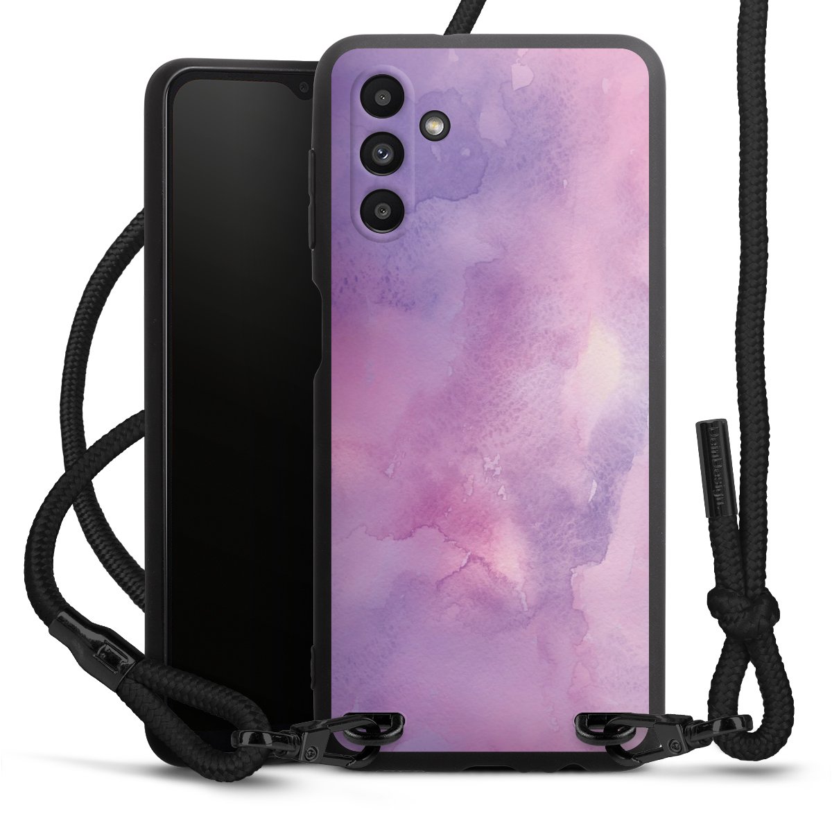The matt black silicone case is made of flexible TPU (thermoplastic polyurethane) and offers robust protection. The durable, unbreakable material makes the cover flexible and dimensionally stable at the same time. The matte surface makes your design stand out more and is less susceptible to fingerprints and dirt. The stylish trend accessory fits comfortably in the hand and is perfectly complemented by the fabric (polyester) mobile phone strap. The braided fabric strap is approx. 1.70 metres long with a diameter of approx. 0.5 cm. Due to the special knotting technique, the length of the strap can be adjusted by simply pulling it, so that you can adapt it individually to your wishes. The practical case to wear around your neck is available with the fabric strap in black. As a little icing on the cake, we have provided the strap with a chic metal fastener in matt black. The strap is securely fastened to the case with loops made of high-quality genuine leather and press studs. The ends of the fabric strap are covered with metallic end caps and thus protected from fraying.