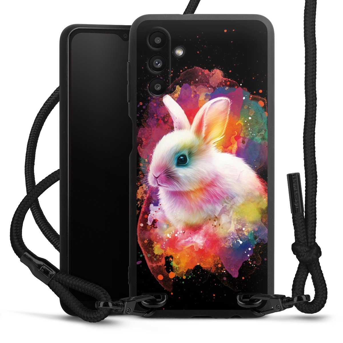 The matt black silicone case is made of flexible TPU (thermoplastic polyurethane) and offers robust protection. The durable, unbreakable material makes the cover flexible and dimensionally stable at the same time. The matte surface makes your design stand out more and is less susceptible to fingerprints and dirt. The stylish trend accessory fits comfortably in the hand and is perfectly complemented by the fabric (polyester) mobile phone strap. The braided fabric strap is approx. 1.70 metres long with a diameter of approx. 0.5 cm. Due to the special knotting technique, the length of the strap can be adjusted by simply pulling it, so that you can adapt it individually to your wishes. The practical case to wear around your neck is available with the fabric strap in black. As a little icing on the cake, we have provided the strap with a chic metal fastener in matt black. The strap is securely fastened to the case with loops made of high-quality genuine leather and press studs. The ends of the fabric strap are covered with metallic end caps and thus protected from fraying.