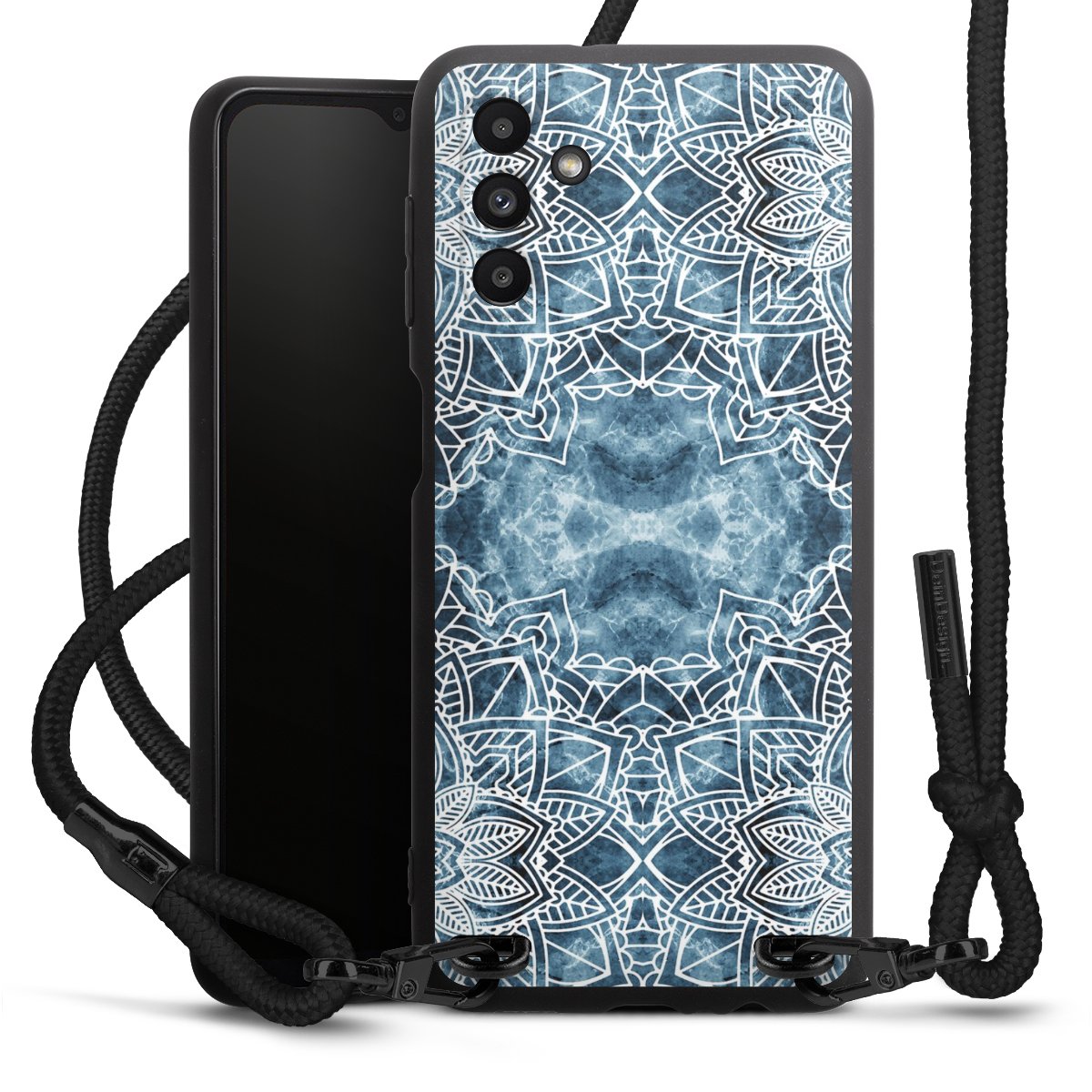 The matt black silicone case is made of flexible TPU (thermoplastic polyurethane) and offers robust protection. The durable, unbreakable material makes the cover flexible and dimensionally stable at the same time. The matte surface makes your design stand out more and is less susceptible to fingerprints and dirt. The stylish trend accessory fits comfortably in the hand and is perfectly complemented by the fabric (polyester) mobile phone strap. The braided fabric strap is approx. 1.70 metres long with a diameter of approx. 0.5 cm. Due to the special knotting technique, the length of the strap can be adjusted by simply pulling it, so that you can adapt it individually to your wishes. The practical case to wear around your neck is available with the fabric strap in black. As a little icing on the cake, we have provided the strap with a chic metal fastener in matt black. The strap is securely fastened to the case with loops made of high-quality genuine leather and press studs. The ends of the fabric strap are covered with metallic end caps and thus protected from fraying.