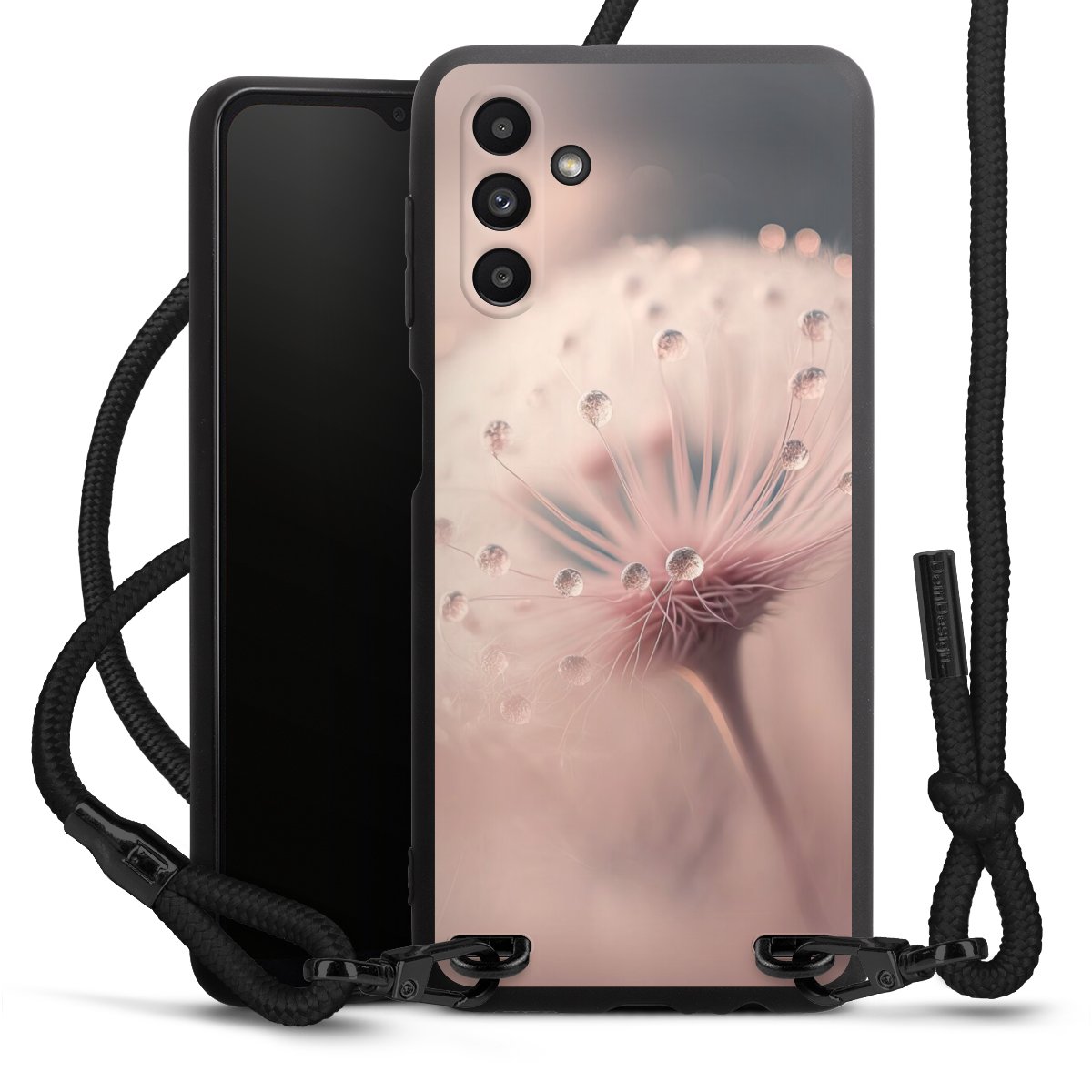 The matt black silicone case is made of flexible TPU (thermoplastic polyurethane) and offers robust protection. The durable, unbreakable material makes the cover flexible and dimensionally stable at the same time. The matte surface makes your design stand out more and is less susceptible to fingerprints and dirt. The stylish trend accessory fits comfortably in the hand and is perfectly complemented by the fabric (polyester) mobile phone strap. The braided fabric strap is approx. 1.70 metres long with a diameter of approx. 0.5 cm. Due to the special knotting technique, the length of the strap can be adjusted by simply pulling it, so that you can adapt it individually to your wishes. The practical case to wear around your neck is available with the fabric strap in black. As a little icing on the cake, we have provided the strap with a chic metal fastener in matt black. The strap is securely fastened to the case with loops made of high-quality genuine leather and press studs. The ends of the fabric strap are covered with metallic end caps and thus protected from fraying.