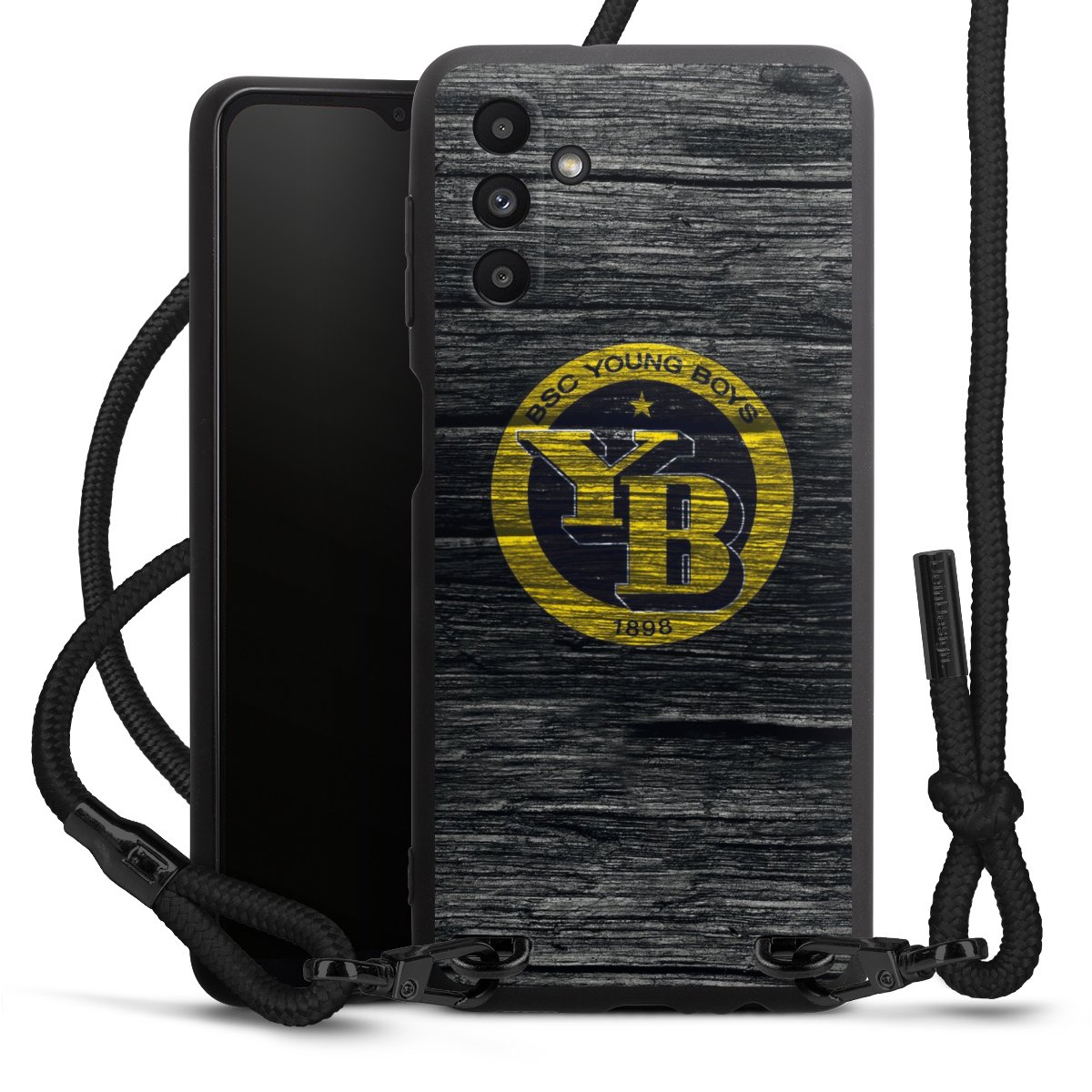 The matt black silicone case is made of flexible TPU (thermoplastic polyurethane) and offers robust protection. The durable, unbreakable material makes the cover flexible and dimensionally stable at the same time. The matte surface makes your design stand out more and is less susceptible to fingerprints and dirt. The stylish trend accessory fits comfortably in the hand and is perfectly complemented by the fabric (polyester) mobile phone strap. The braided fabric strap is approx. 1.70 metres long with a diameter of approx. 0.5 cm. Due to the special knotting technique, the length of the strap can be adjusted by simply pulling it, so that you can adapt it individually to your wishes. The practical case to wear around your neck is available with the fabric strap in black. As a little icing on the cake, we have provided the strap with a chic metal fastener in matt black. The strap is securely fastened to the case with loops made of high-quality genuine leather and press studs. The ends of the fabric strap are covered with metallic end caps and thus protected from fraying.
