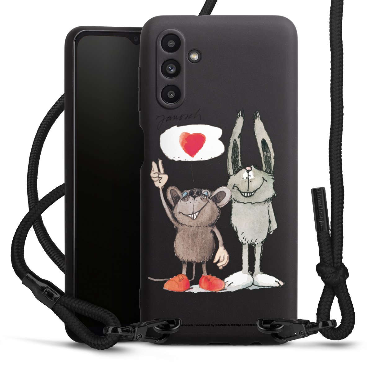 The matt black silicone case is made of flexible TPU (thermoplastic polyurethane) and offers robust protection. The durable, unbreakable material makes the cover flexible and dimensionally stable at the same time. The matte surface makes your design stand out more and is less susceptible to fingerprints and dirt. The stylish trend accessory fits comfortably in the hand and is perfectly complemented by the fabric (polyester) mobile phone strap. The braided fabric strap is approx. 1.70 metres long with a diameter of approx. 0.5 cm. Due to the special knotting technique, the length of the strap can be adjusted by simply pulling it, so that you can adapt it individually to your wishes. The practical case to wear around your neck is available with the fabric strap in black. As a little icing on the cake, we have provided the strap with a chic metal fastener in matt black. The strap is securely fastened to the case with loops made of high-quality genuine leather and press studs. The ends of the fabric strap are covered with metallic end caps and thus protected from fraying.