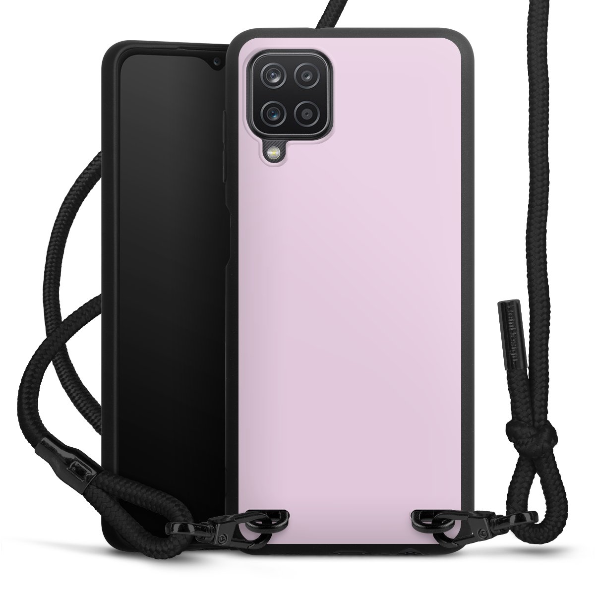 The matt black silicone case is made of flexible TPU (thermoplastic polyurethane) and offers robust protection. The durable, unbreakable material makes the cover flexible and dimensionally stable at the same time. The matte surface makes your design stand out more and is less susceptible to fingerprints and dirt. The stylish trend accessory fits comfortably in the hand and is perfectly complemented by the fabric (polyester) mobile phone strap. The braided fabric strap is approx. 1.70 metres long with a diameter of approx. 0.5 cm. Due to the special knotting technique, the length of the strap can be adjusted by simply pulling it, so that you can adapt it individually to your wishes. The practical case to wear around your neck is available with the fabric strap in black. As a little icing on the cake, we have provided the strap with a chic metal fastener in matt black. The strap is securely fastened to the case with loops made of high-quality genuine leather and press studs. The ends of the fabric strap are covered with metallic end caps and thus protected from fraying.