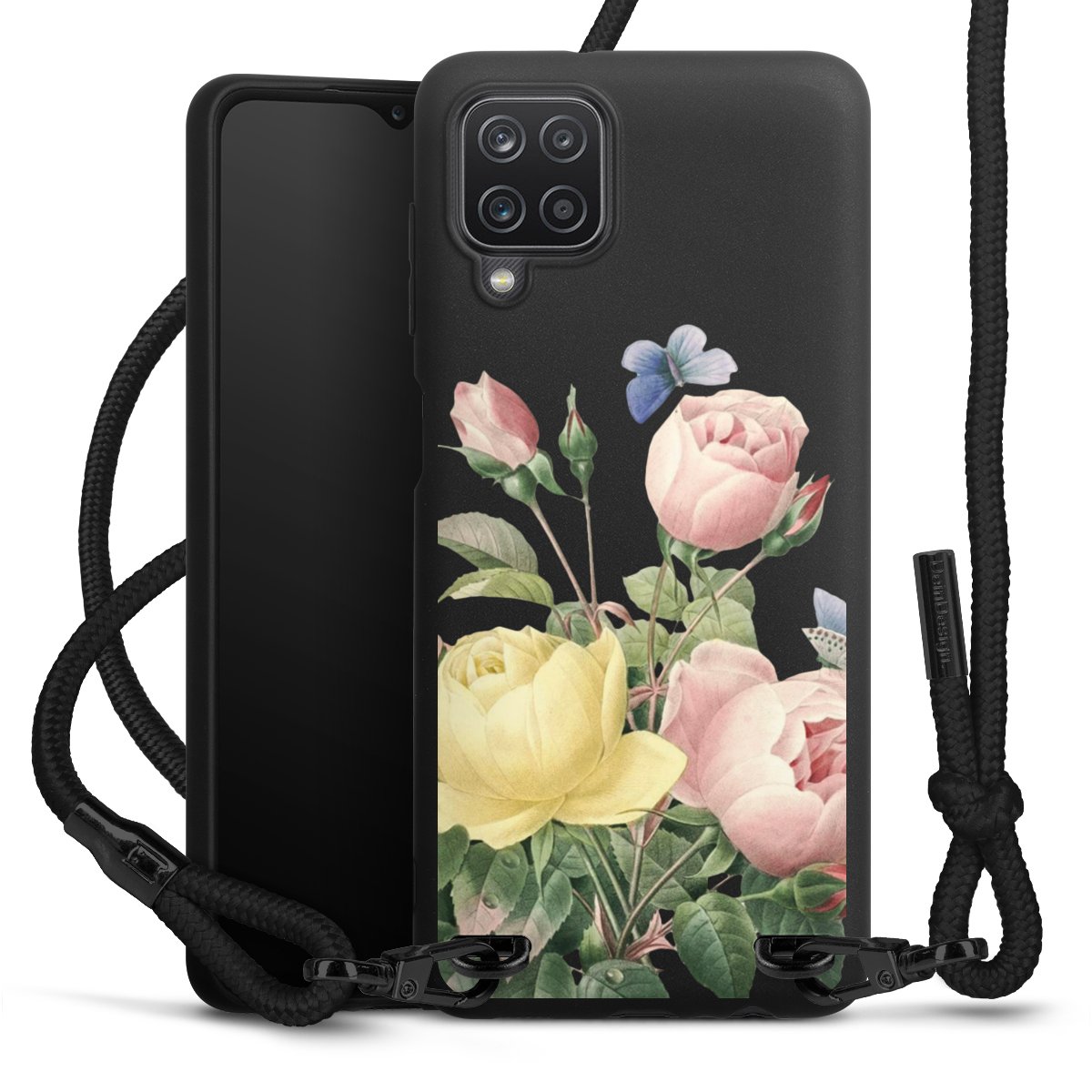 The matt black silicone case is made of flexible TPU (thermoplastic polyurethane) and offers robust protection. The durable, unbreakable material makes the cover flexible and dimensionally stable at the same time. The matte surface makes your design stand out more and is less susceptible to fingerprints and dirt. The stylish trend accessory fits comfortably in the hand and is perfectly complemented by the fabric (polyester) mobile phone strap. The braided fabric strap is approx. 1.70 metres long with a diameter of approx. 0.5 cm. Due to the special knotting technique, the length of the strap can be adjusted by simply pulling it, so that you can adapt it individually to your wishes. The practical case to wear around your neck is available with the fabric strap in black. As a little icing on the cake, we have provided the strap with a chic metal fastener in matt black. The strap is securely fastened to the case with loops made of high-quality genuine leather and press studs. The ends of the fabric strap are covered with metallic end caps and thus protected from fraying.