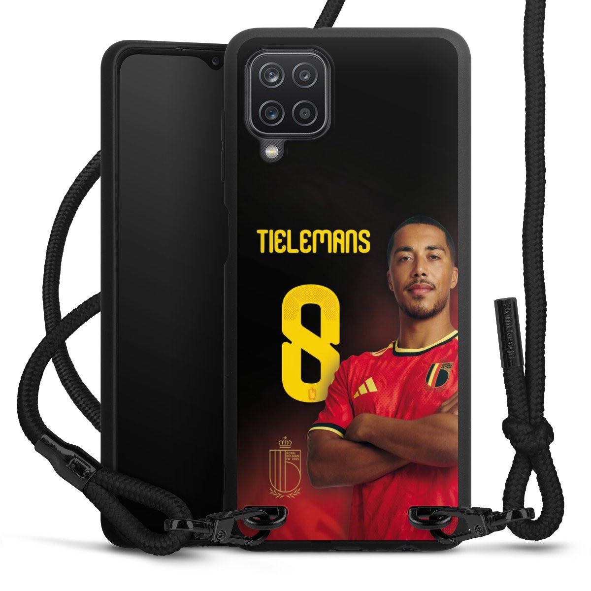 The matt black silicone case is made of flexible TPU (thermoplastic polyurethane) and offers robust protection. The durable, unbreakable material makes the cover flexible and dimensionally stable at the same time. The matte surface makes your design stand out more and is less susceptible to fingerprints and dirt. The stylish trend accessory fits comfortably in the hand and is perfectly complemented by the fabric (polyester) mobile phone strap. The braided fabric strap is approx. 1.70 metres long with a diameter of approx. 0.5 cm. Due to the special knotting technique, the length of the strap can be adjusted by simply pulling it, so that you can adapt it individually to your wishes. The practical case to wear around your neck is available with the fabric strap in black. As a little icing on the cake, we have provided the strap with a chic metal fastener in matt black. The strap is securely fastened to the case with loops made of high-quality genuine leather and press studs. The ends of the fabric strap are covered with metallic end caps and thus protected from fraying.