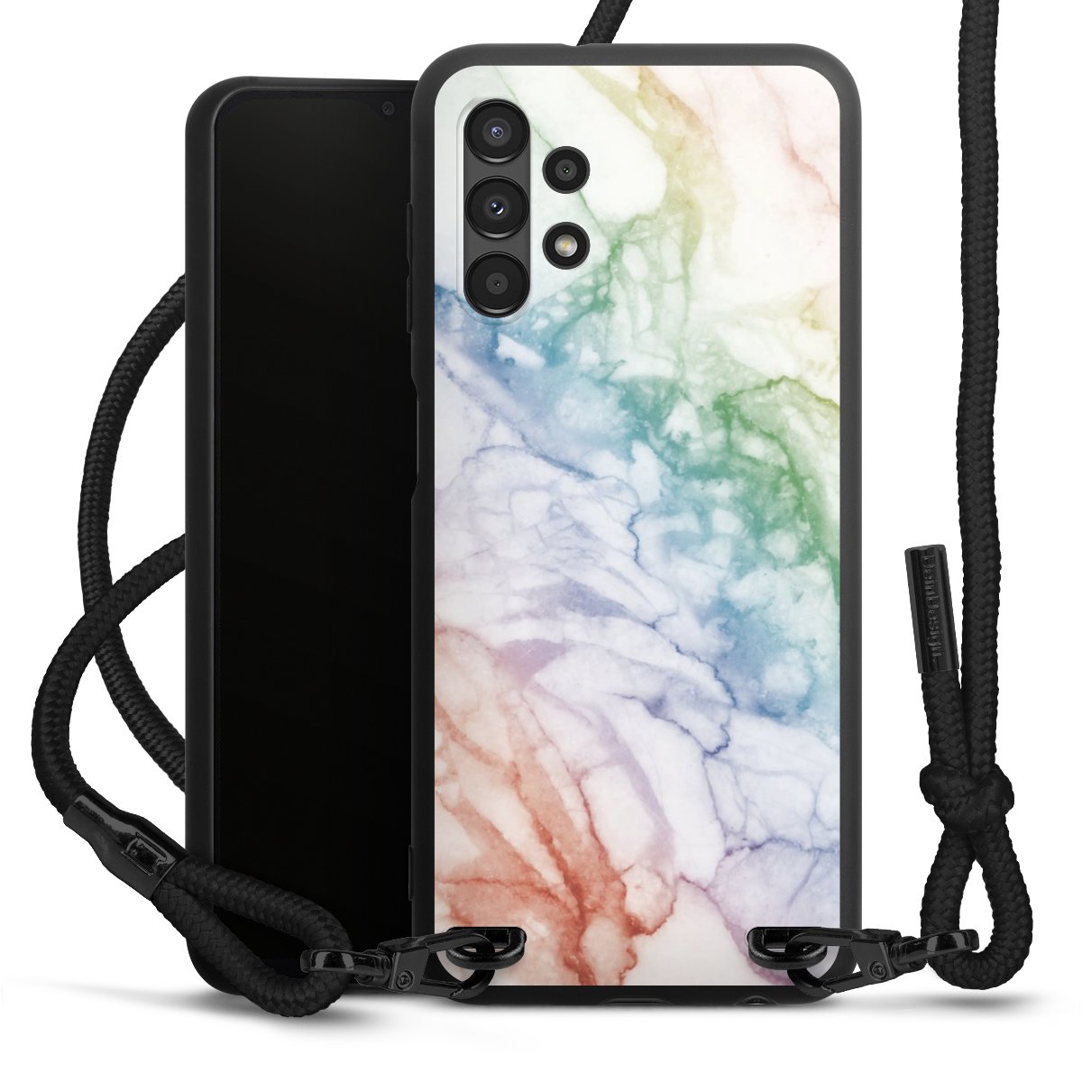 We use the solid direct print process for this phone case, which is why the print area only covers the back and the edge remains unprinted. The case to wear around your neck can be ordered unprinted, fully printed, or partially printed. For your design, either choose one of our exclusive shop motifs or get creative and create your own design, for example with photos and overlays. Design your own personal trend accessory and make an individual statement on the streets!