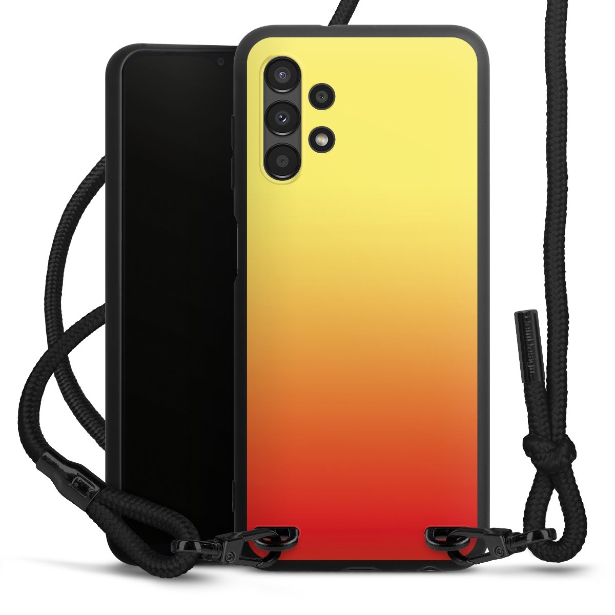 We use the solid direct print process for this phone case, which is why the print area only covers the back and the edge remains unprinted. The case to wear around your neck can be ordered unprinted, fully printed, or partially printed. For your design, either choose one of our exclusive shop motifs or get creative and create your own design, for example with photos and overlays. Design your own personal trend accessory and make an individual statement on the streets!