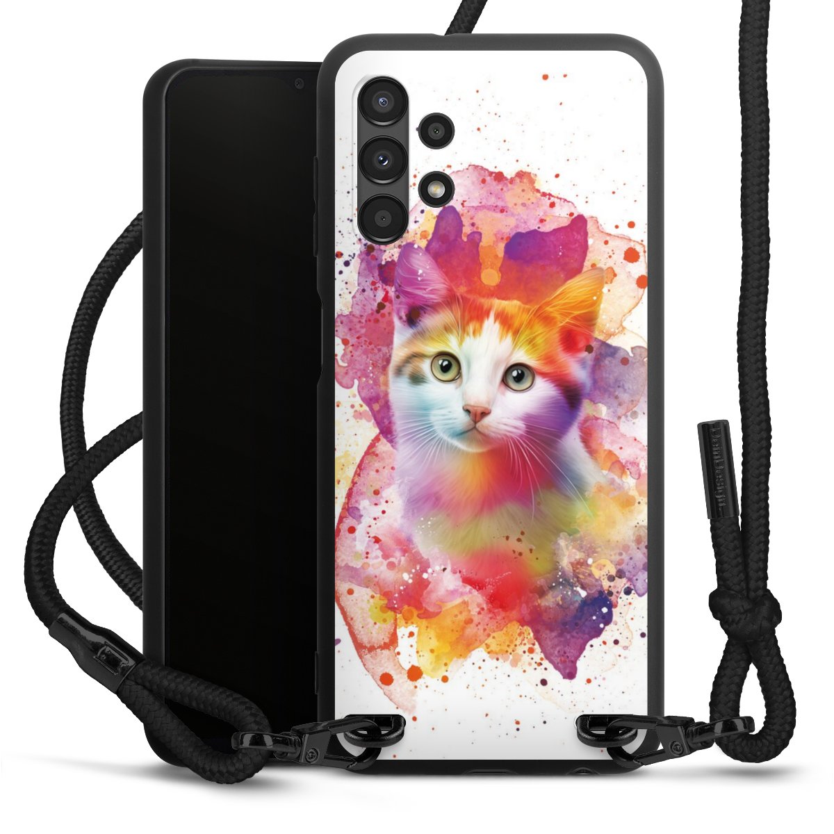 The matt black silicone case is made of flexible TPU (thermoplastic polyurethane) and offers robust protection. The durable, unbreakable material makes the cover flexible and dimensionally stable at the same time. The matte surface makes your design stand out more and is less susceptible to fingerprints and dirt. The stylish trend accessory fits comfortably in the hand and is perfectly complemented by the fabric (polyester) mobile phone strap. The braided fabric strap is approx. 1.70 metres long with a diameter of approx. 0.5 cm. Due to the special knotting technique, the length of the strap can be adjusted by simply pulling it, so that you can adapt it individually to your wishes. The practical case to wear around your neck is available with the fabric strap in black. As a little icing on the cake, we have provided the strap with a chic metal fastener in matt black. The strap is securely fastened to the case with loops made of high-quality genuine leather and press studs. The ends of the fabric strap are covered with metallic end caps and thus protected from fraying.