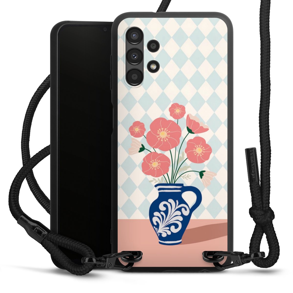 We use the solid direct print process for this phone case, which is why the print area only covers the back and the edge remains unprinted. The case to wear around your neck can be ordered unprinted, fully printed, or partially printed. For your design, either choose one of our exclusive shop motifs or get creative and create your own design, for example with photos and overlays. Design your own personal trend accessory and make an individual statement on the streets!