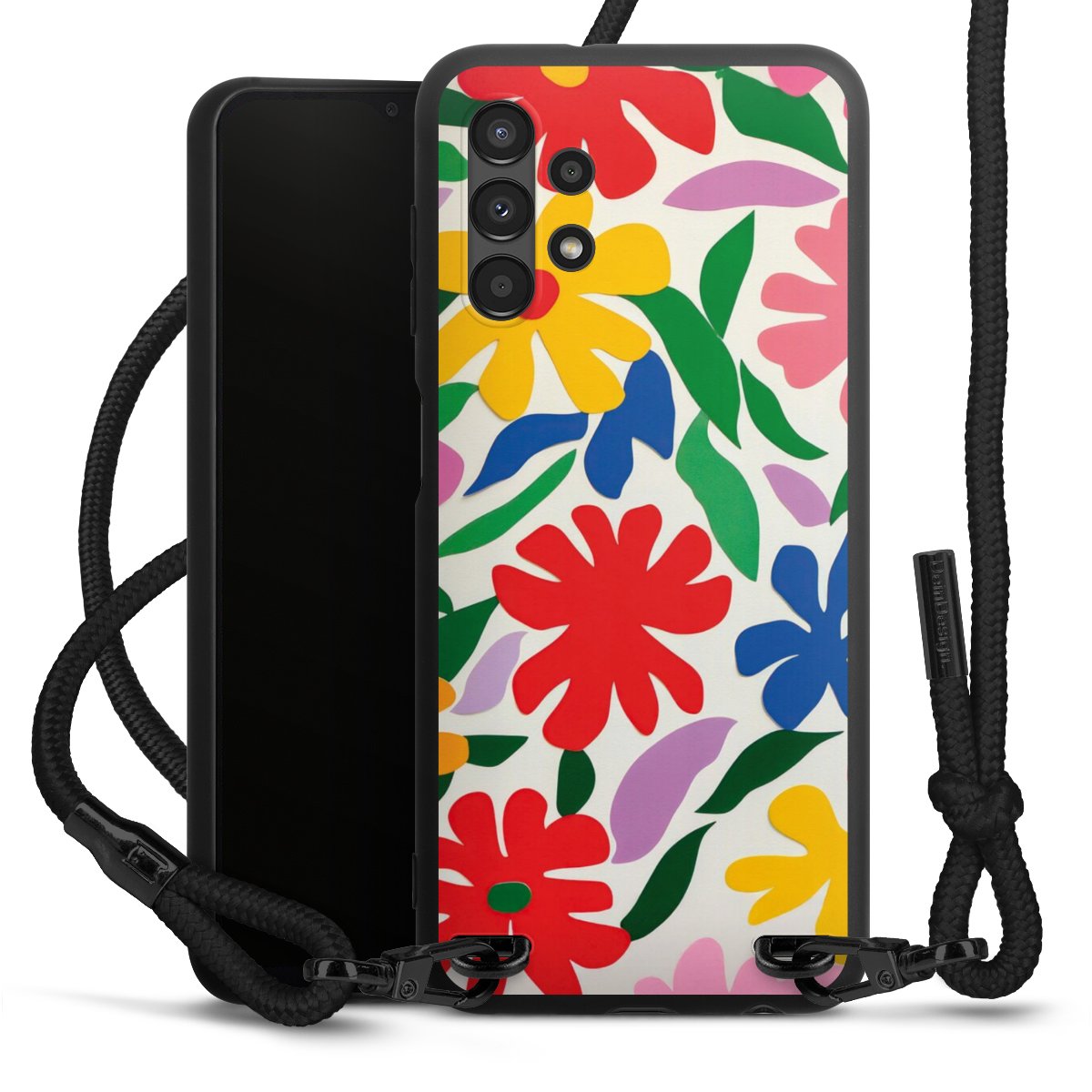 We use the solid direct print process for this phone case, which is why the print area only covers the back and the edge remains unprinted. The case to wear around your neck can be ordered unprinted, fully printed, or partially printed. For your design, either choose one of our exclusive shop motifs or get creative and create your own design, for example with photos and overlays. Design your own personal trend accessory and make an individual statement on the streets!
