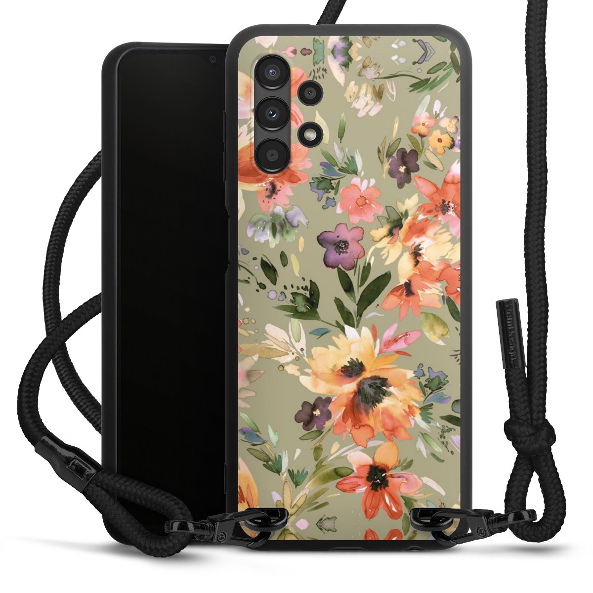We use the solid direct print process for this phone case, which is why the print area only covers the back and the edge remains unprinted. The case to wear around your neck can be ordered unprinted, fully printed, or partially printed. For your design, either choose one of our exclusive shop motifs or get creative and create your own design, for example with photos and overlays. Design your own personal trend accessory and make an individual statement on the streets!