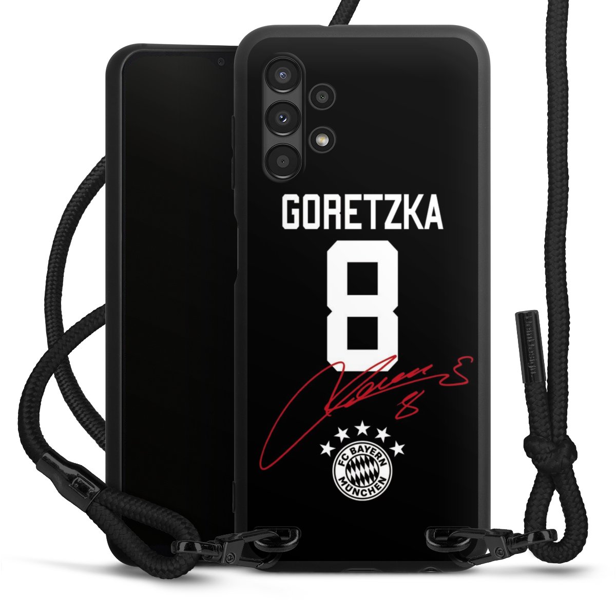 The matt black silicone case is made of flexible TPU (thermoplastic polyurethane) and offers robust protection. The durable, unbreakable material makes the cover flexible and dimensionally stable at the same time. The matte surface makes your design stand out more and is less susceptible to fingerprints and dirt. The stylish trend accessory fits comfortably in the hand and is perfectly complemented by the fabric (polyester) mobile phone strap. The braided fabric strap is approx. 1.70 metres long with a diameter of approx. 0.5 cm. Due to the special knotting technique, the length of the strap can be adjusted by simply pulling it, so that you can adapt it individually to your wishes. The practical case to wear around your neck is available with the fabric strap in black. As a little icing on the cake, we have provided the strap with a chic metal fastener in matt black. The strap is securely fastened to the case with loops made of high-quality genuine leather and press studs. The ends of the fabric strap are covered with metallic end caps and thus protected from fraying.