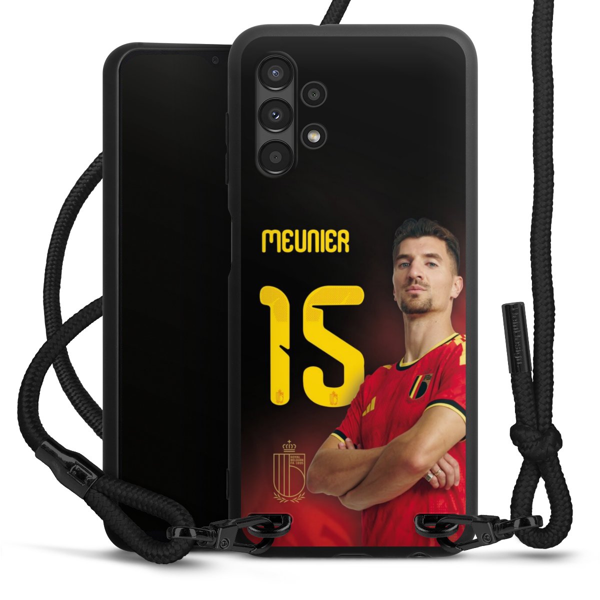 The matt black silicone case is made of flexible TPU (thermoplastic polyurethane) and offers robust protection. The durable, unbreakable material makes the cover flexible and dimensionally stable at the same time. The matte surface makes your design stand out more and is less susceptible to fingerprints and dirt. The stylish trend accessory fits comfortably in the hand and is perfectly complemented by the fabric (polyester) mobile phone strap. The braided fabric strap is approx. 1.70 metres long with a diameter of approx. 0.5 cm. Due to the special knotting technique, the length of the strap can be adjusted by simply pulling it, so that you can adapt it individually to your wishes. The practical case to wear around your neck is available with the fabric strap in black. As a little icing on the cake, we have provided the strap with a chic metal fastener in matt black. The strap is securely fastened to the case with loops made of high-quality genuine leather and press studs. The ends of the fabric strap are covered with metallic end caps and thus protected from fraying.
