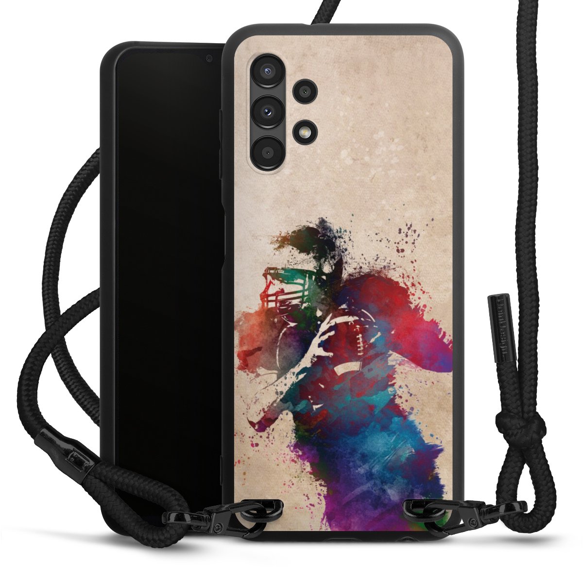 We use the solid direct print process for this phone case, which is why the print area only covers the back and the edge remains unprinted. The case to wear around your neck can be ordered unprinted, fully printed, or partially printed. For your design, either choose one of our exclusive shop motifs or get creative and create your own design, for example with photos and overlays. Design your own personal trend accessory and make an individual statement on the streets!