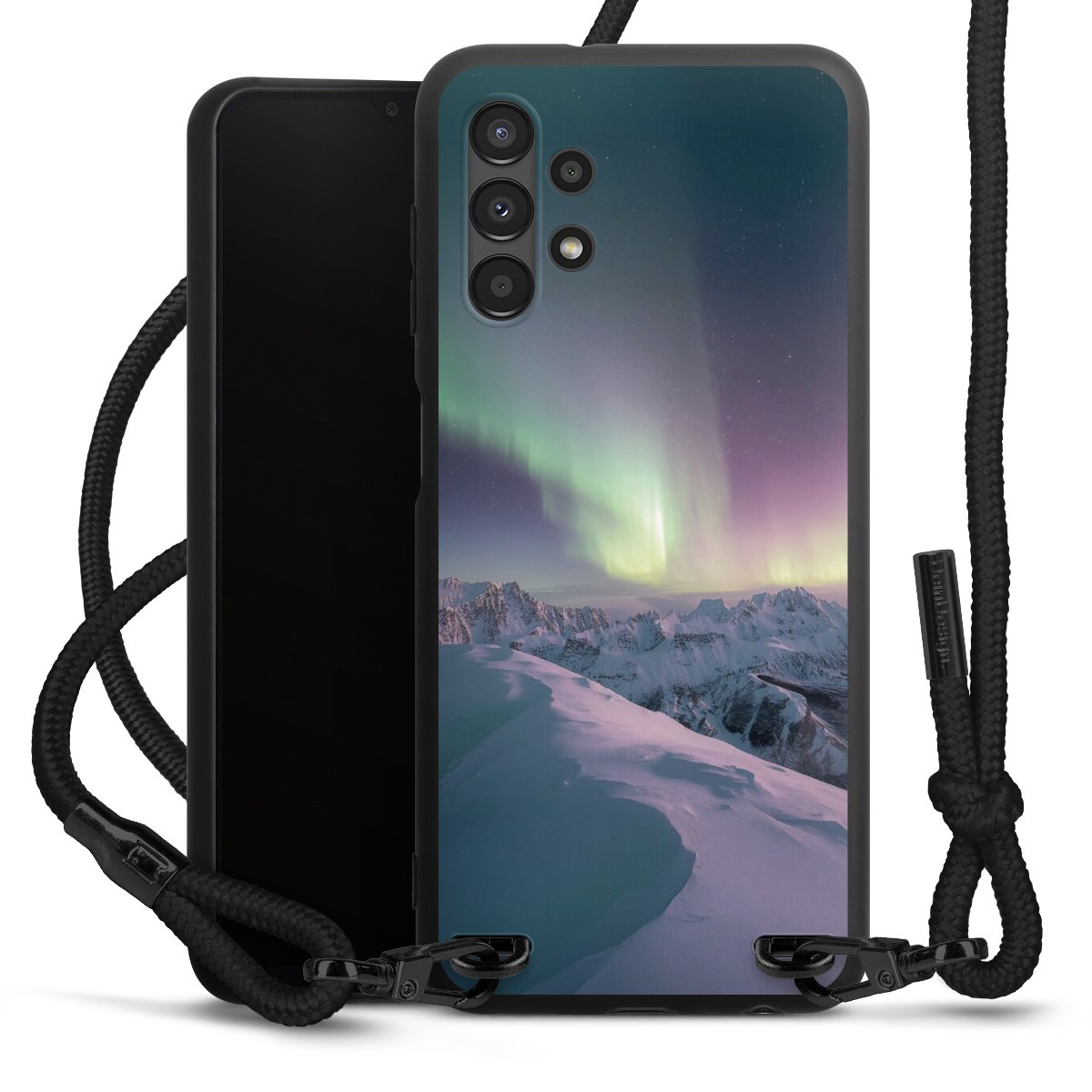 We use the solid direct print process for this phone case, which is why the print area only covers the back and the edge remains unprinted. The case to wear around your neck can be ordered unprinted, fully printed, or partially printed. For your design, either choose one of our exclusive shop motifs or get creative and create your own design, for example with photos and overlays. Design your own personal trend accessory and make an individual statement on the streets!