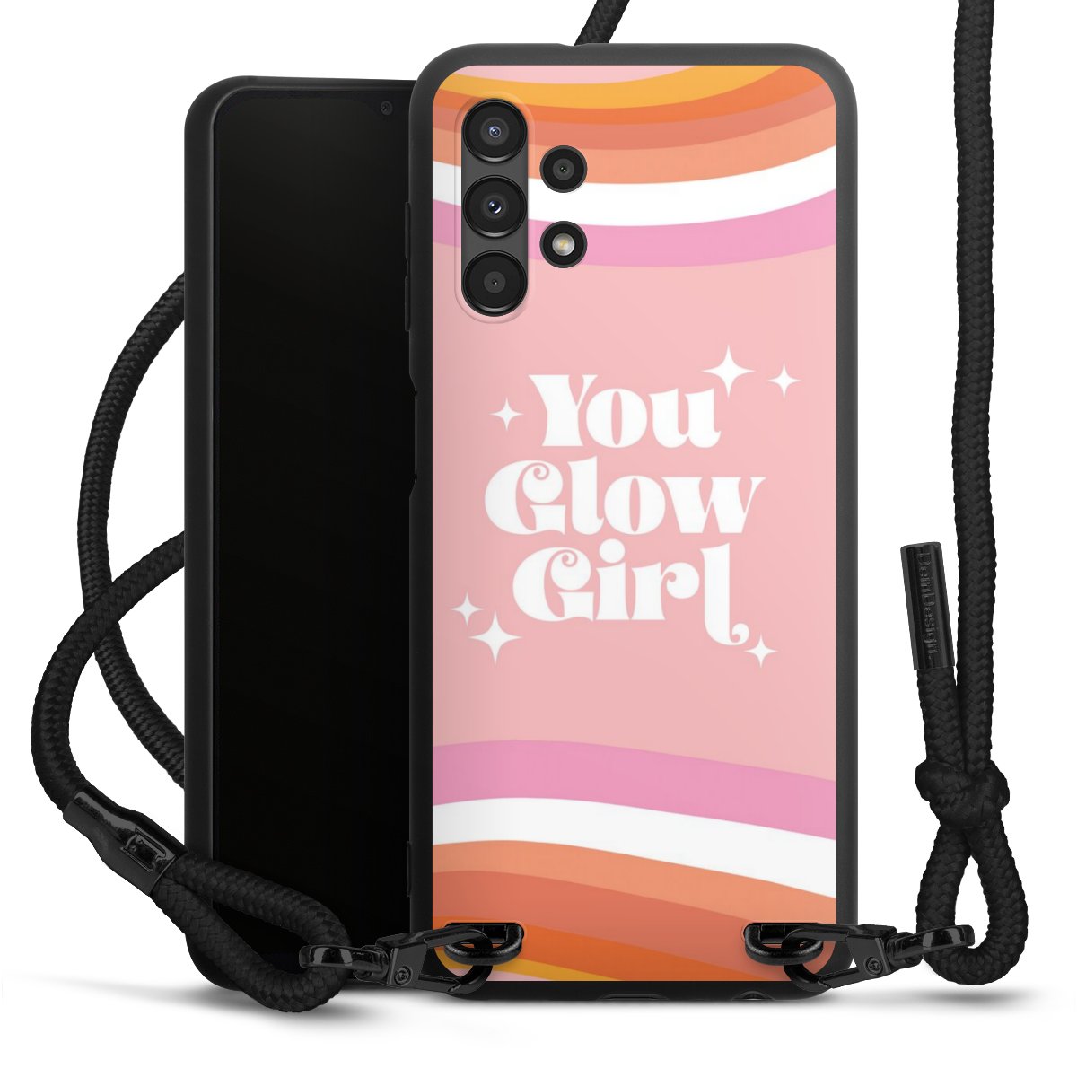 We use the solid direct print process for this phone case, which is why the print area only covers the back and the edge remains unprinted. The case to wear around your neck can be ordered unprinted, fully printed, or partially printed. For your design, either choose one of our exclusive shop motifs or get creative and create your own design, for example with photos and overlays. Design your own personal trend accessory and make an individual statement on the streets!