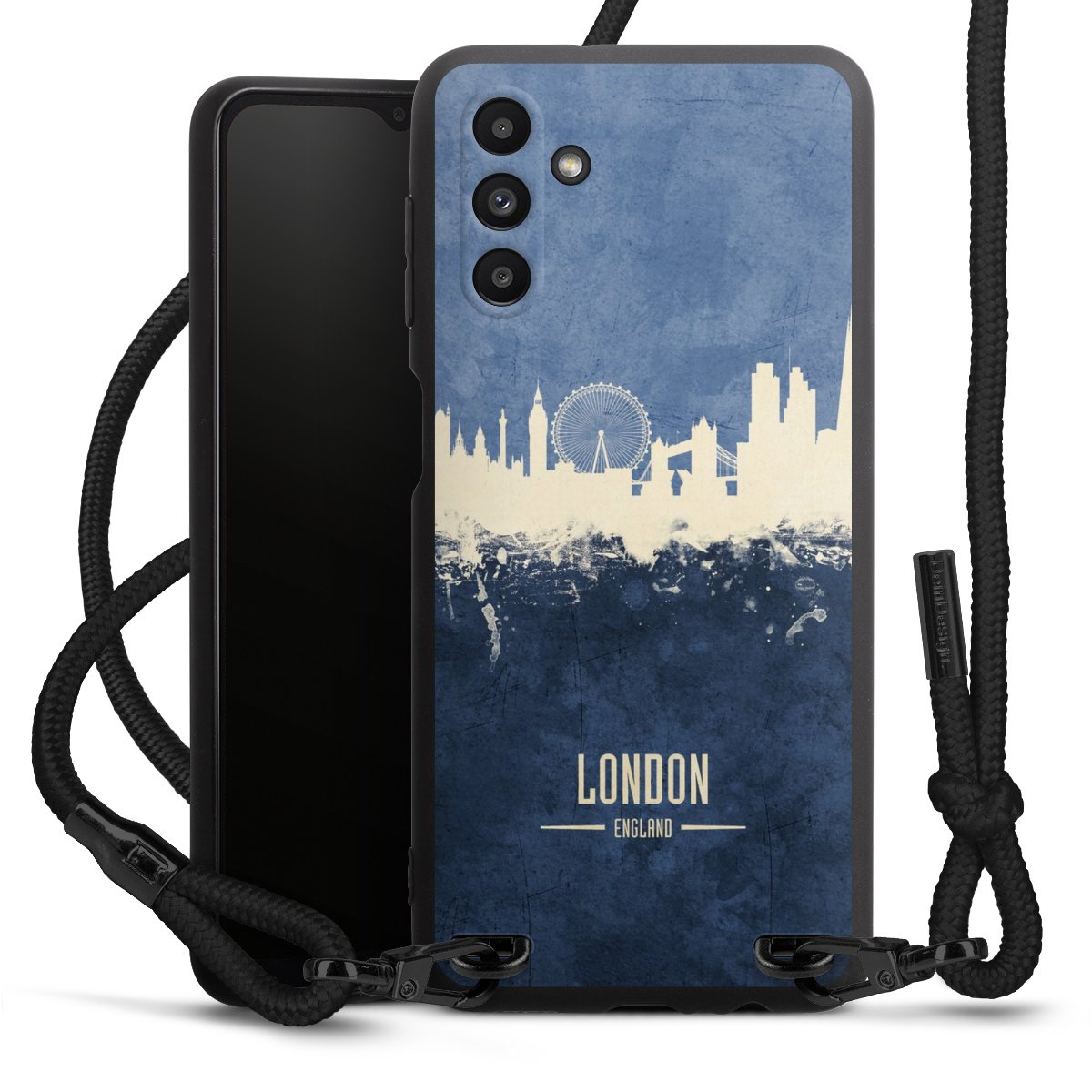 We use the solid direct print process for this phone case, which is why the print area only covers the back and the edge remains unprinted. The case to wear around your neck can be ordered unprinted, fully printed, or partially printed. For your design, either choose one of our exclusive shop motifs or get creative and create your own design, for example with photos and overlays. Design your own personal trend accessory and make an individual statement on the streets!