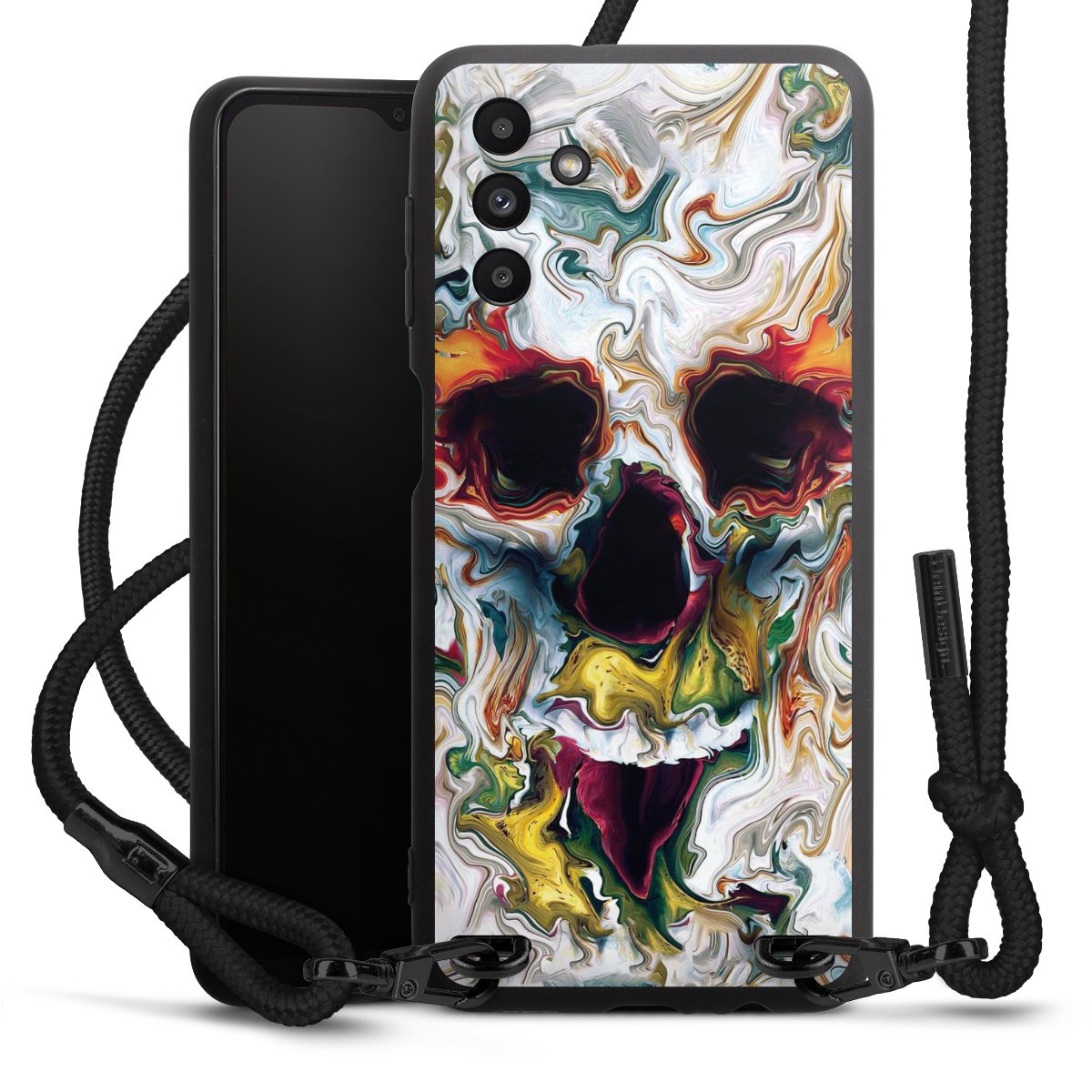 We use the solid direct print process for this phone case, which is why the print area only covers the back and the edge remains unprinted. The case to wear around your neck can be ordered unprinted, fully printed, or partially printed. For your design, either choose one of our exclusive shop motifs or get creative and create your own design, for example with photos and overlays. Design your own personal trend accessory and make an individual statement on the streets!