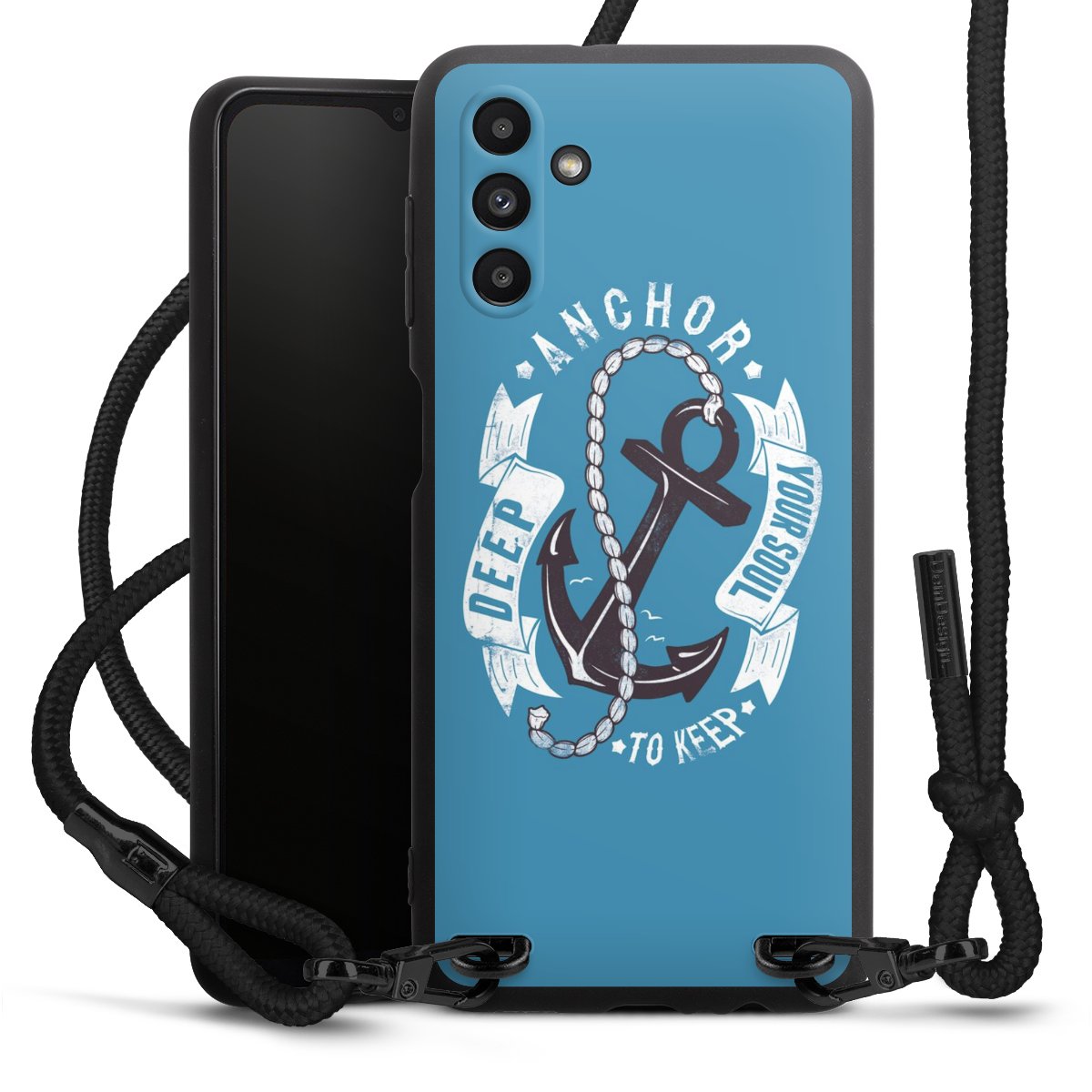 The matt black silicone case is made of flexible TPU (thermoplastic polyurethane) and offers robust protection. The durable, unbreakable material makes the cover flexible and dimensionally stable at the same time. The matte surface makes your design stand out more and is less susceptible to fingerprints and dirt. The stylish trend accessory fits comfortably in the hand and is perfectly complemented by the fabric (polyester) mobile phone strap. The braided fabric strap is approx. 1.70 metres long with a diameter of approx. 0.5 cm. Due to the special knotting technique, the length of the strap can be adjusted by simply pulling it, so that you can adapt it individually to your wishes. The practical case to wear around your neck is available with the fabric strap in black. As a little icing on the cake, we have provided the strap with a chic metal fastener in matt black. The strap is securely fastened to the case with loops made of high-quality genuine leather and press studs. The ends of the fabric strap are covered with metallic end caps and thus protected from fraying.