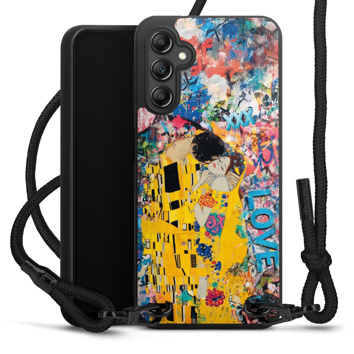 We use the solid direct print process for this phone case, which is why the print area only covers the back and the edge remains unprinted. The case to wear around your neck can be ordered unprinted, fully printed, or partially printed. For your design, either choose one of our exclusive shop motifs or get creative and create your own design, for example with photos and overlays. Design your own personal trend accessory and make an individual statement on the streets!