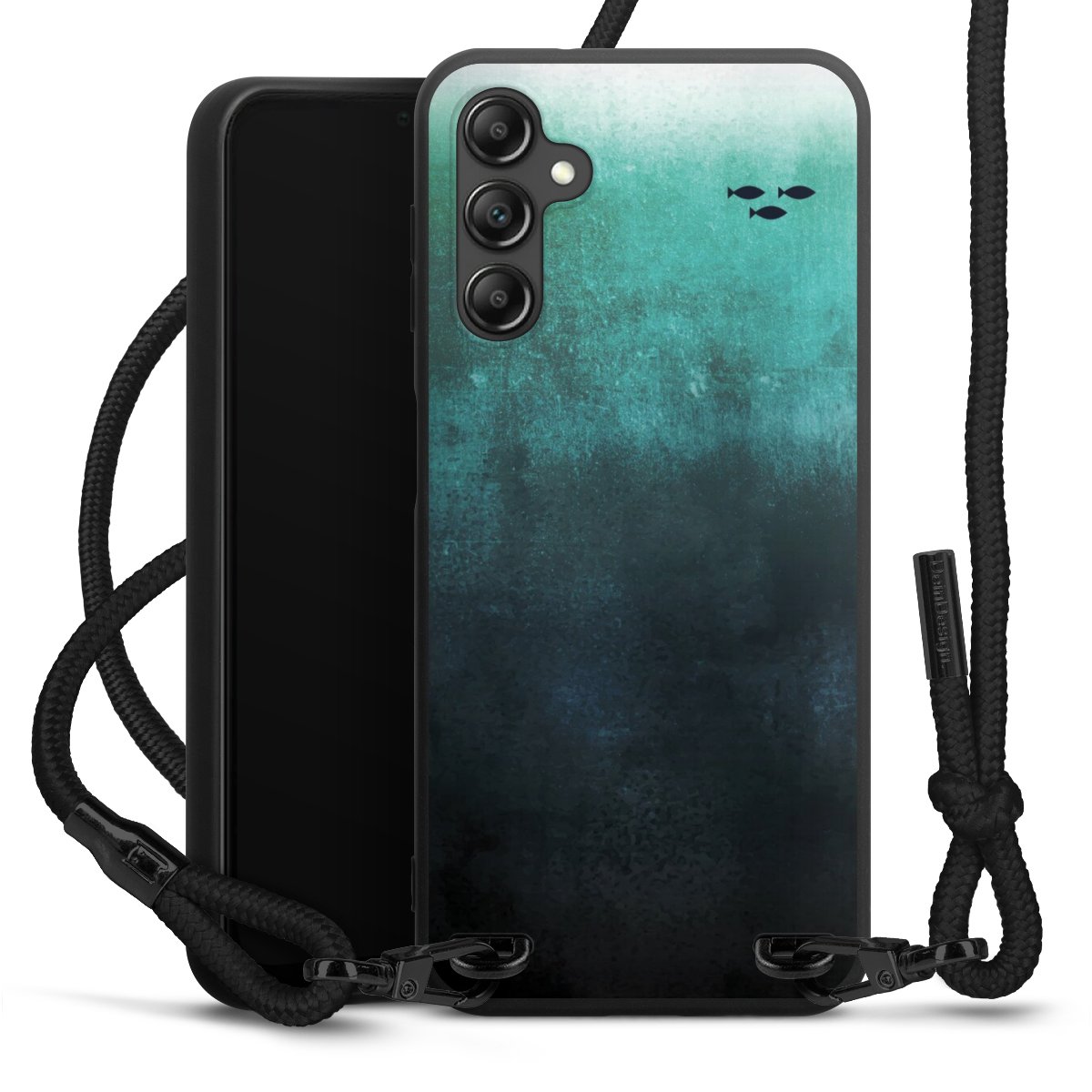 The matt black silicone case is made of flexible TPU (thermoplastic polyurethane) and offers robust protection. The durable, unbreakable material makes the cover flexible and dimensionally stable at the same time. The matte surface makes your design stand out more and is less susceptible to fingerprints and dirt. The stylish trend accessory fits comfortably in the hand and is perfectly complemented by the fabric (polyester) mobile phone strap. The braided fabric strap is approx. 1.70 metres long with a diameter of approx. 0.5 cm. Due to the special knotting technique, the length of the strap can be adjusted by simply pulling it, so that you can adapt it individually to your wishes. The practical case to wear around your neck is available with the fabric strap in black. As a little icing on the cake, we have provided the strap with a chic metal fastener in matt black. The strap is securely fastened to the case with loops made of high-quality genuine leather and press studs. The ends of the fabric strap are covered with metallic end caps and thus protected from fraying.