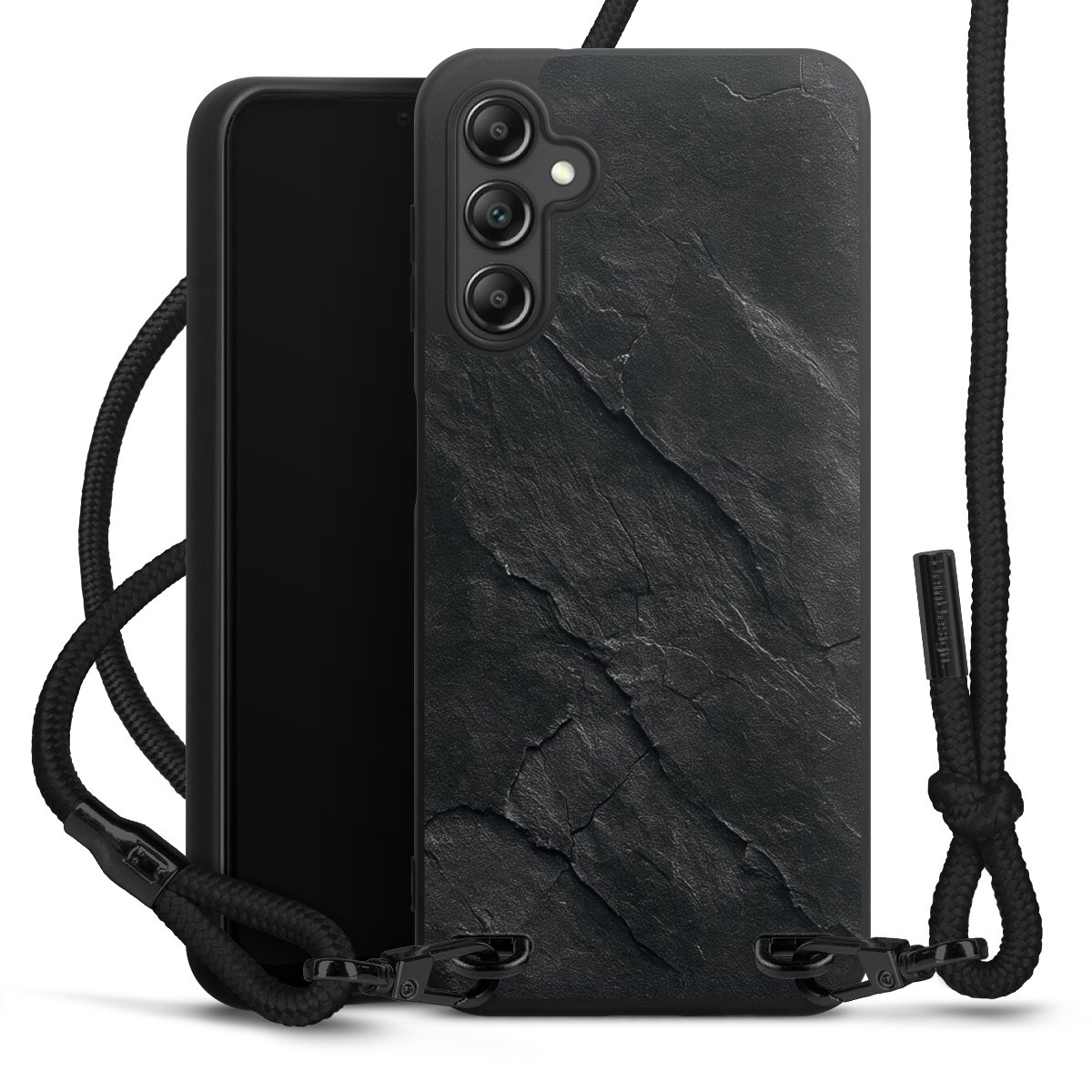 Pure Black: Phone case, fabric strap and metal details in stylish matt black.