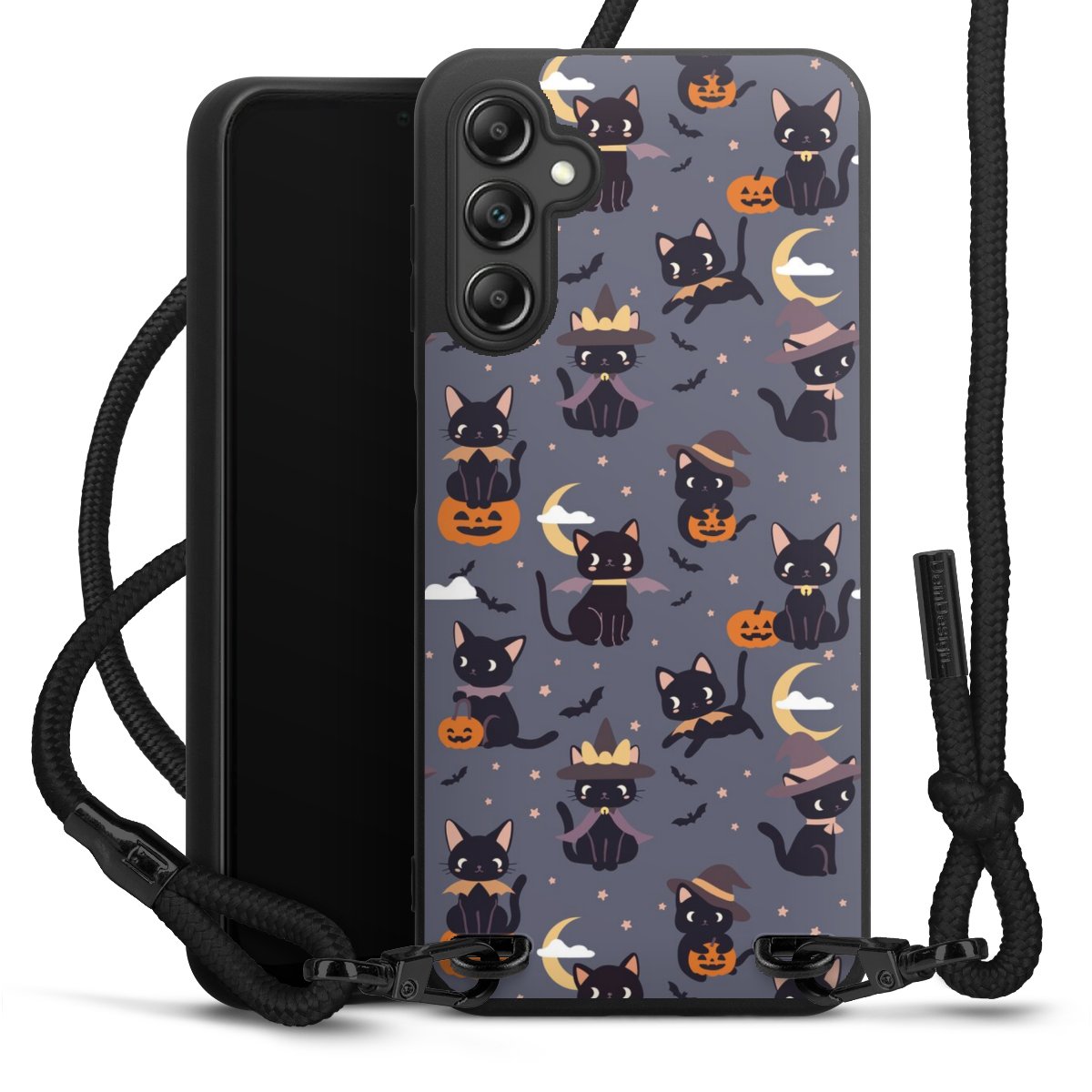 Pure Black: Phone case, fabric strap and metal details in stylish matt black.