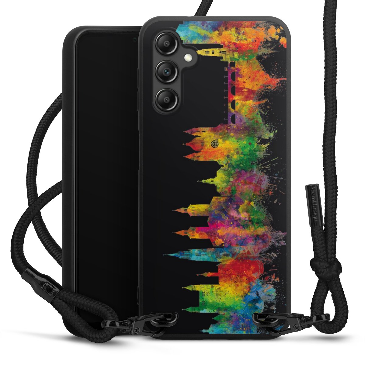 We use the solid direct print process for this phone case, which is why the print area only covers the back and the edge remains unprinted. The case to wear around your neck can be ordered unprinted, fully printed, or partially printed. For your design, either choose one of our exclusive shop motifs or get creative and create your own design, for example with photos and overlays. Design your own personal trend accessory and make an individual statement on the streets!