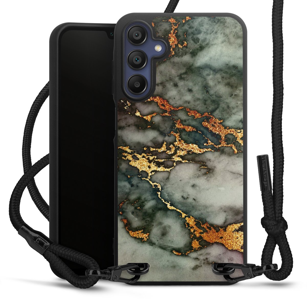 Pure Black: Phone case, fabric strap and metal details in stylish matt black.