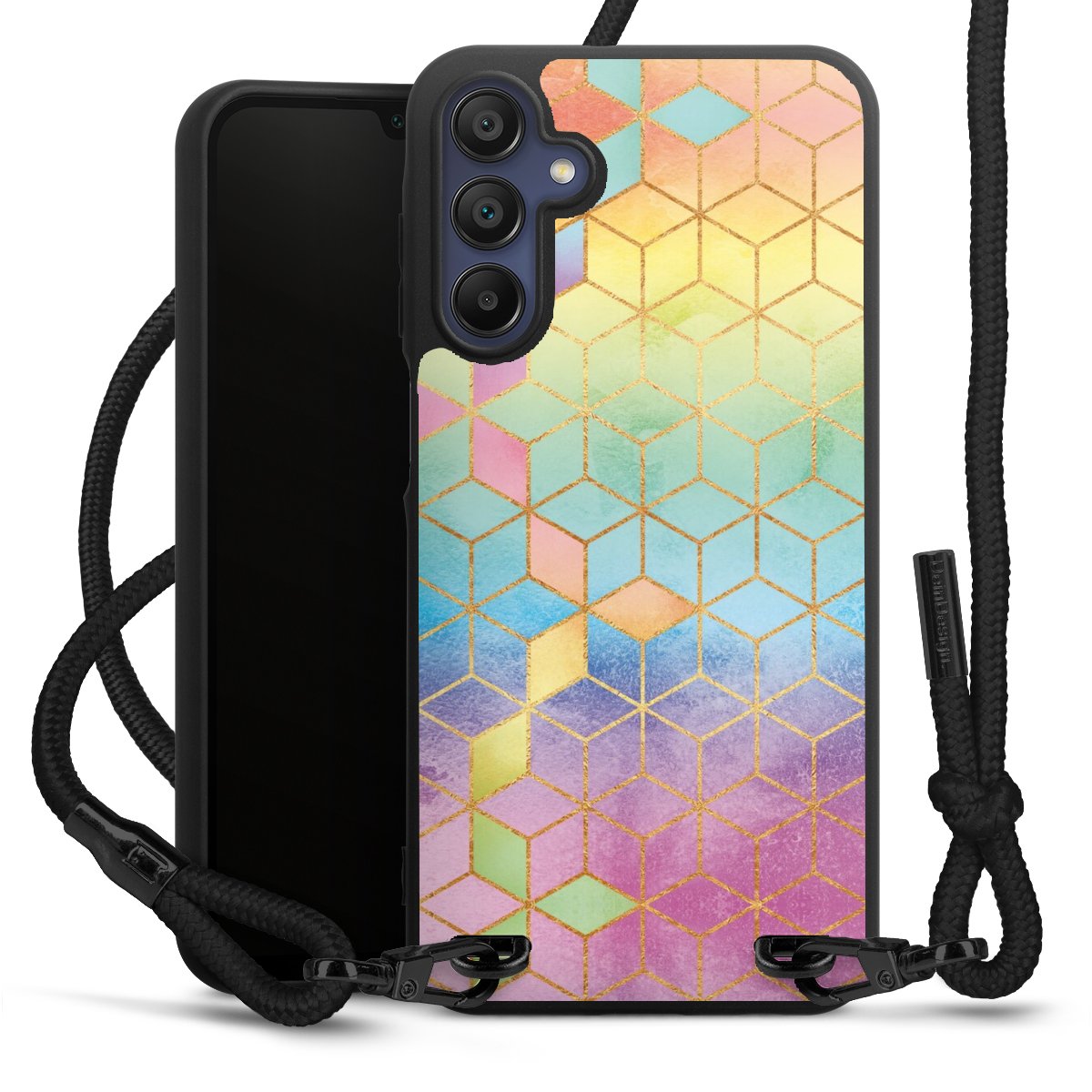 We use the solid direct print process for this phone case, which is why the print area only covers the back and the edge remains unprinted. The case to wear around your neck can be ordered unprinted, fully printed, or partially printed. For your design, either choose one of our exclusive shop motifs or get creative and create your own design, for example with photos and overlays. Design your own personal trend accessory and make an individual statement on the streets!