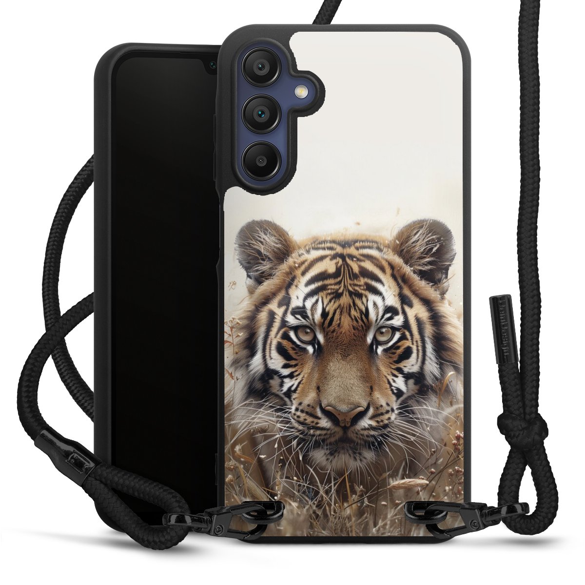 The matt black silicone case is made of flexible TPU (thermoplastic polyurethane) and offers robust protection. The durable, unbreakable material makes the cover flexible and dimensionally stable at the same time. The matte surface makes your design stand out more and is less susceptible to fingerprints and dirt. The stylish trend accessory fits comfortably in the hand and is perfectly complemented by the fabric (polyester) mobile phone strap. The braided fabric strap is approx. 1.70 metres long with a diameter of approx. 0.5 cm. Due to the special knotting technique, the length of the strap can be adjusted by simply pulling it, so that you can adapt it individually to your wishes. The practical case to wear around your neck is available with the fabric strap in black. As a little icing on the cake, we have provided the strap with a chic metal fastener in matt black. The strap is securely fastened to the case with loops made of high-quality genuine leather and press studs. The ends of the fabric strap are covered with metallic end caps and thus protected from fraying.