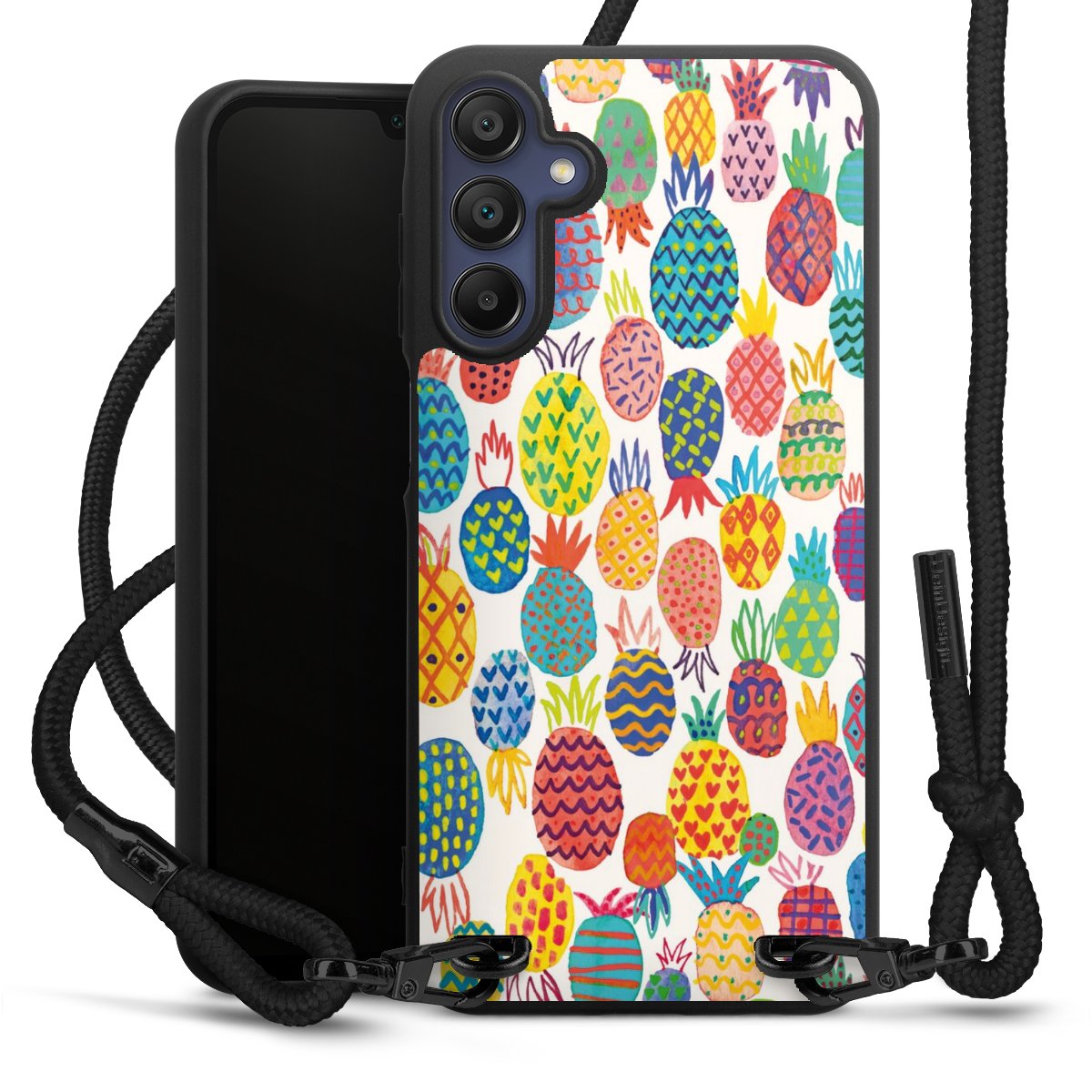 We use the solid direct print process for this phone case, which is why the print area only covers the back and the edge remains unprinted. The case to wear around your neck can be ordered unprinted, fully printed, or partially printed. For your design, either choose one of our exclusive shop motifs or get creative and create your own design, for example with photos and overlays. Design your own personal trend accessory and make an individual statement on the streets!