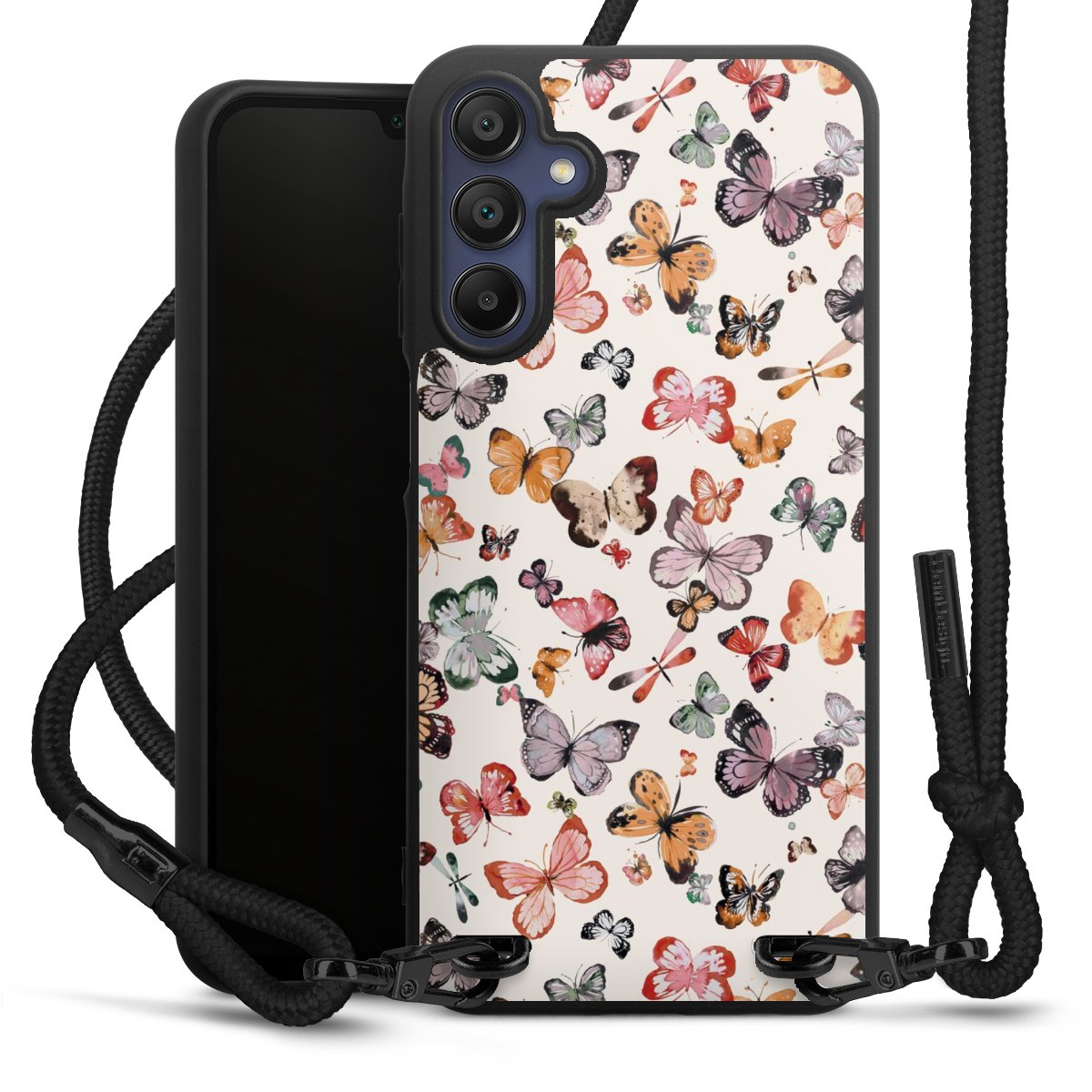 Pure Black: Phone case, fabric strap and metal details in stylish matt black.